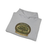 Step into ancient legend with this enchanting hoodie featuring a Celtic-inspired design. The front displays a graceful hawthorn canopy framed in a traditional knotwork oval, while the back showcases a striking circular emblem of the Fair Folk perched upon a hawthorn limb. With “Hawthorn” above and the banner “Tree of the Fair Folk” below, this hoodie blends folklore, artistry, and timeless style. Perfect for lovers of Celtic tradition, fairy lore, and mystical woodland charm, it’s more than clothing—it’s a story you can wear.