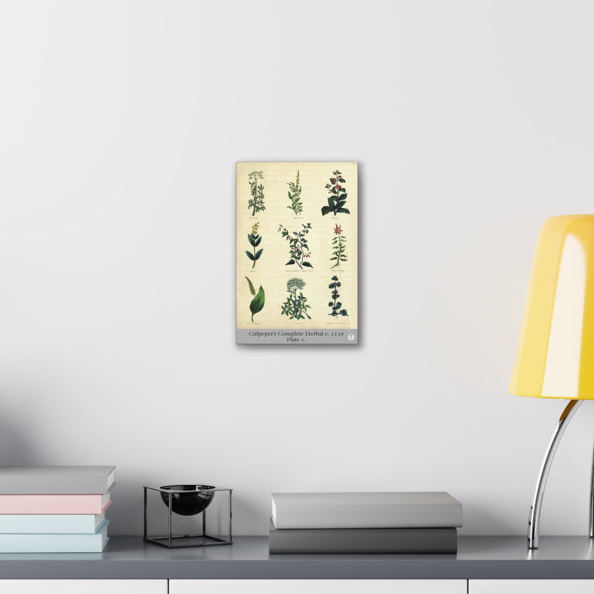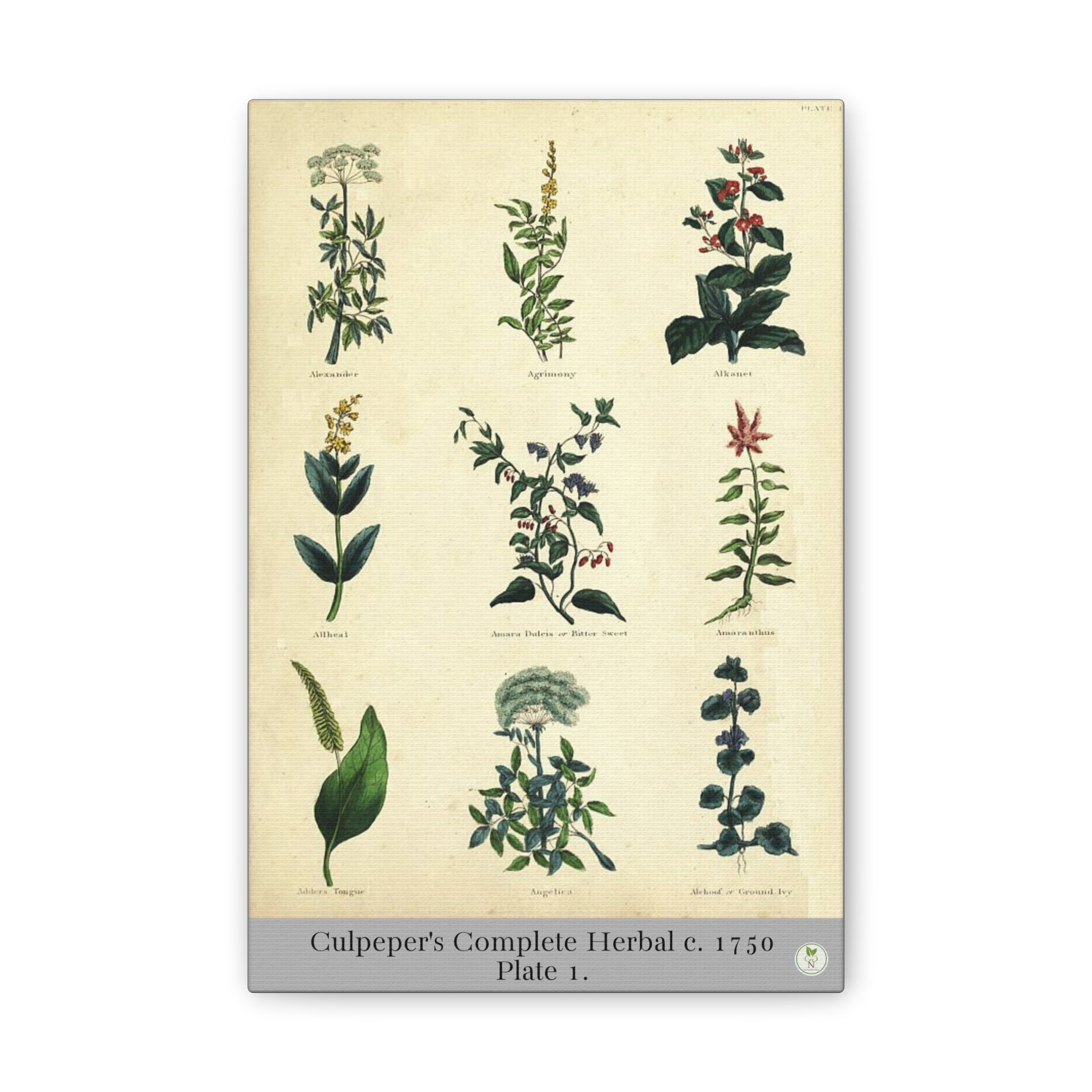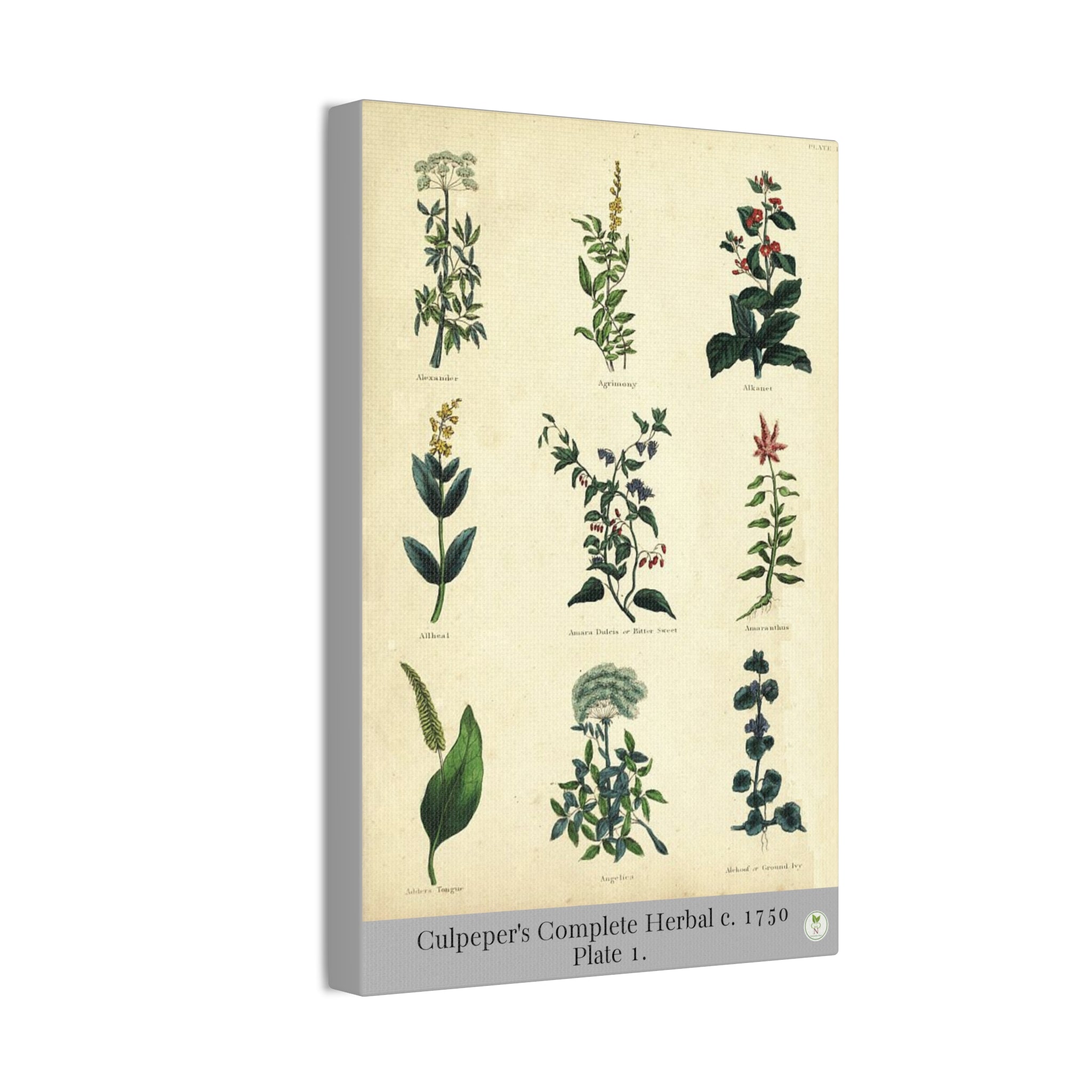 Culpeper’s Complete Herbal c.1750, Plate 1 Botanical Engraving Reproduction on Canvas
