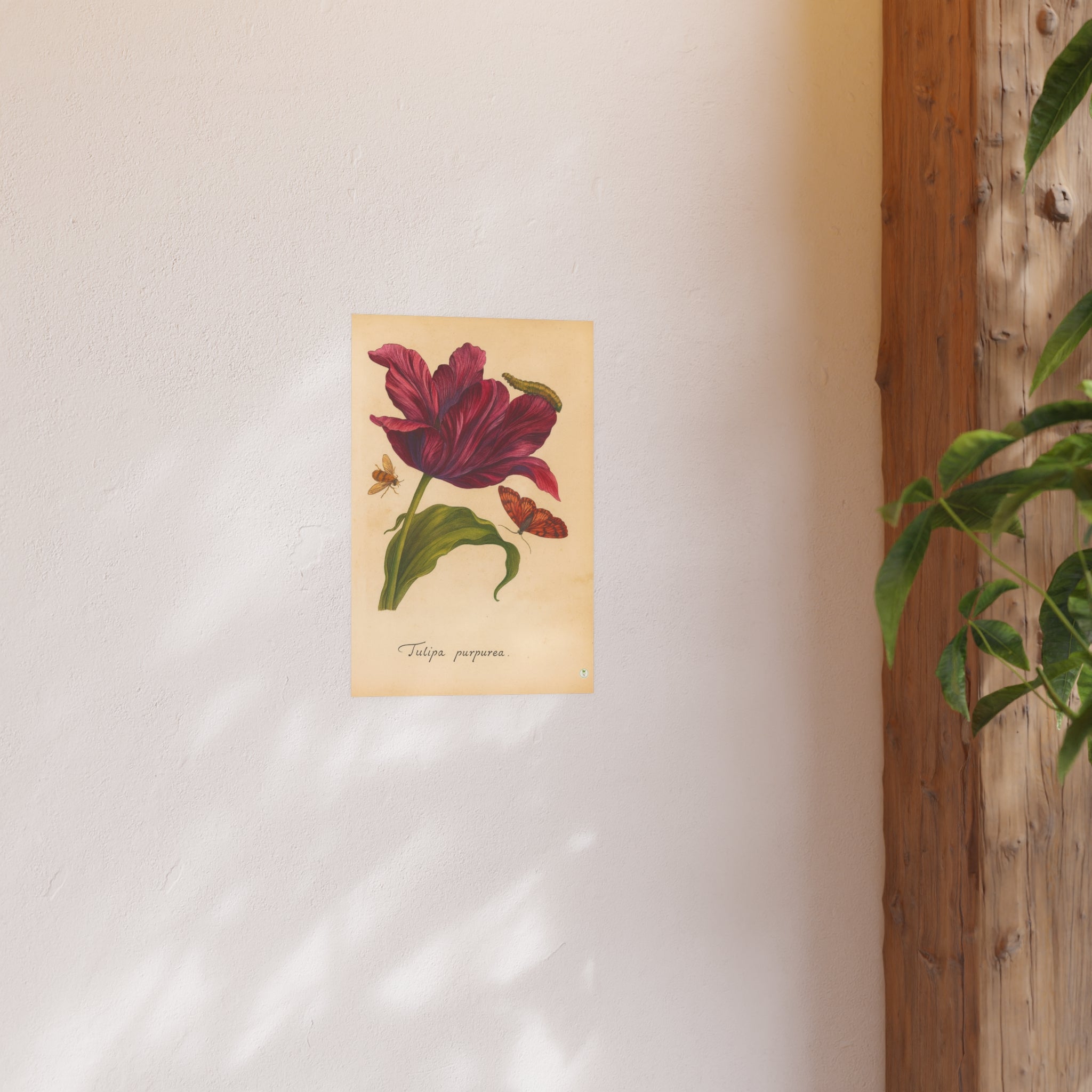 Tulipa Purpurea with Insects Colorized Reproduction from Erucarum Ortus (1717)