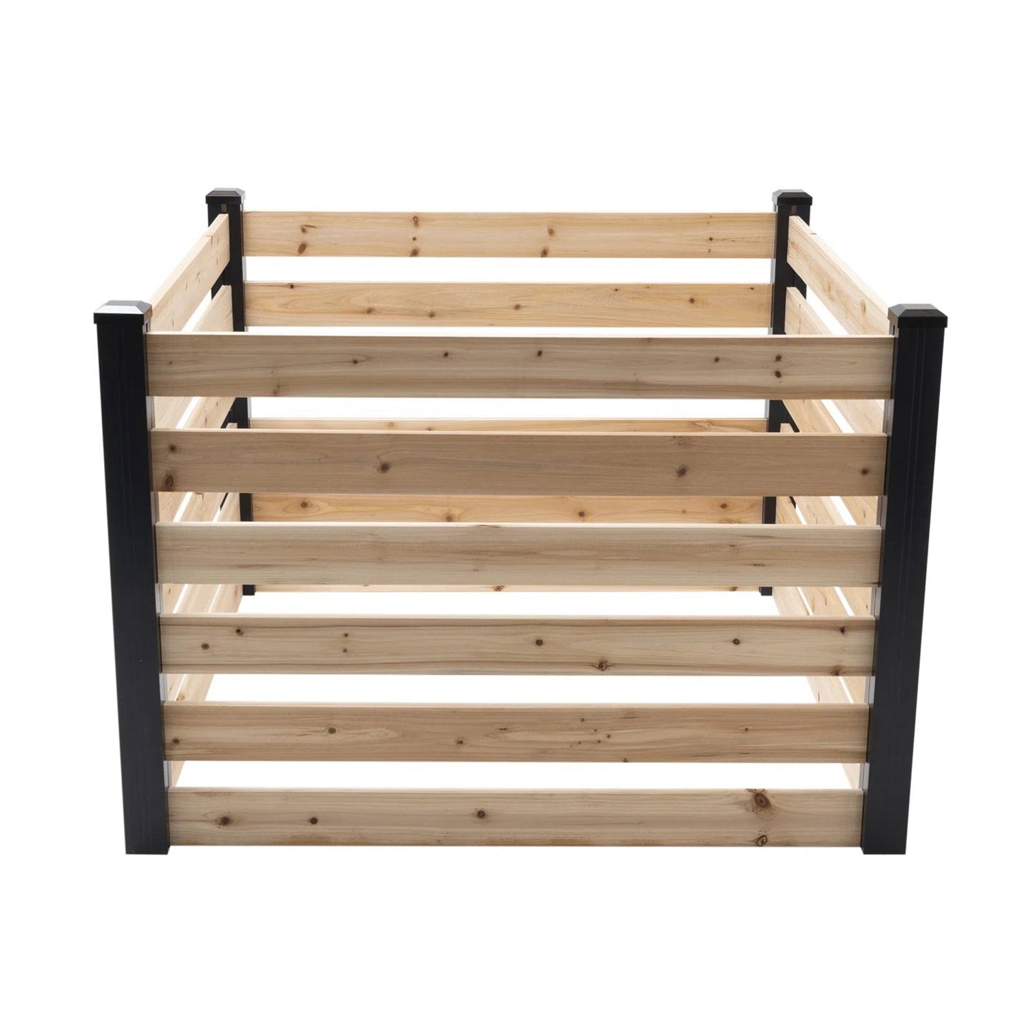 Turn yard and food waste into usable, fertile compost for your flowers, vegetables, and lawn with the 244 Gallon Outdoor Cedar Wooden Compost Bin in Natural Black Wood Finish. Cedar Compost Bin. The square bin has rot-resistant cedar slats spaced 2 inches apart for plenty of airflow to speed decomposition and prevent odors. The legs and post caps are contrasting black vinyl for a two-tone look. Put this compost bin together without tools or hardware. Note that some photos show a compost bin paired with an expansion kit.