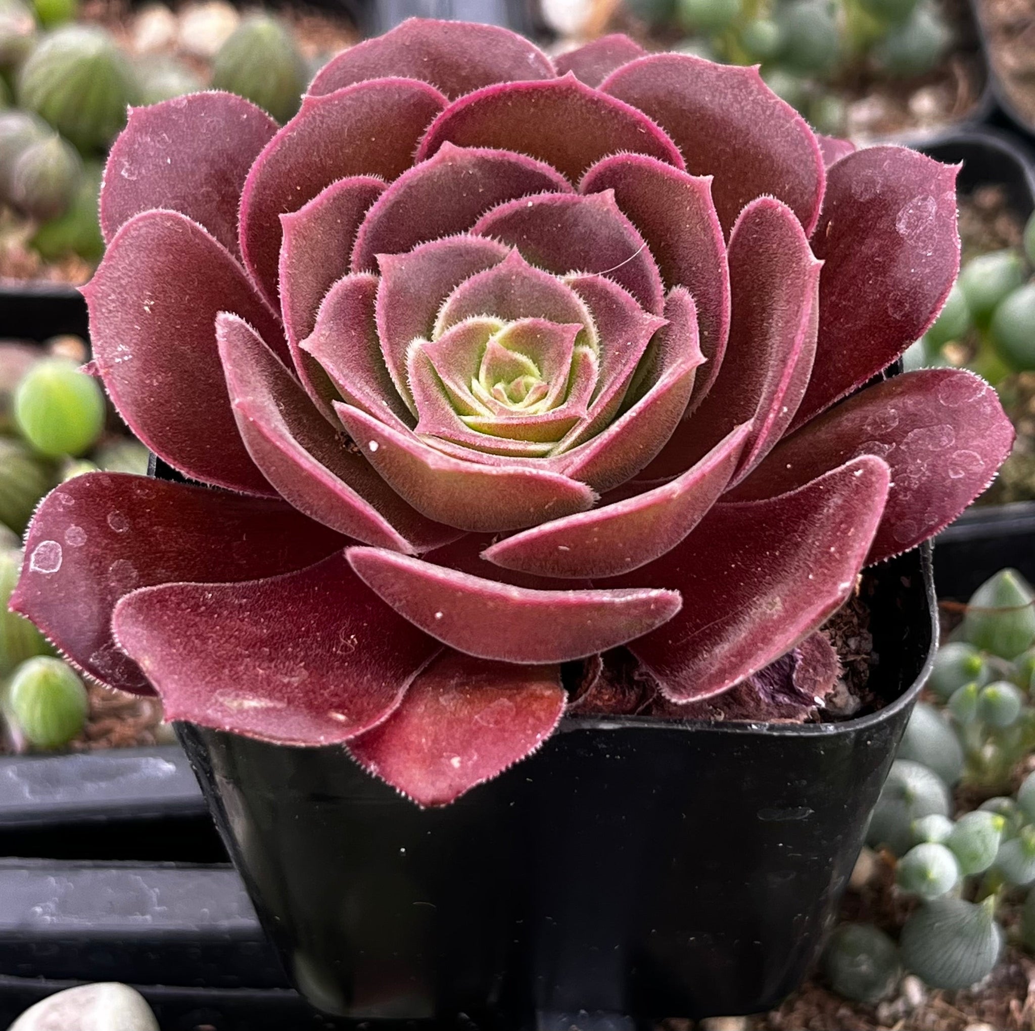 Included in Purchase: You will receive 1 (2 inch) Red Aeonium 'Velour' succulent. This succulent will be shipped fully rooted with a plastic pot and soil. Quick grow and care guide will also be included.