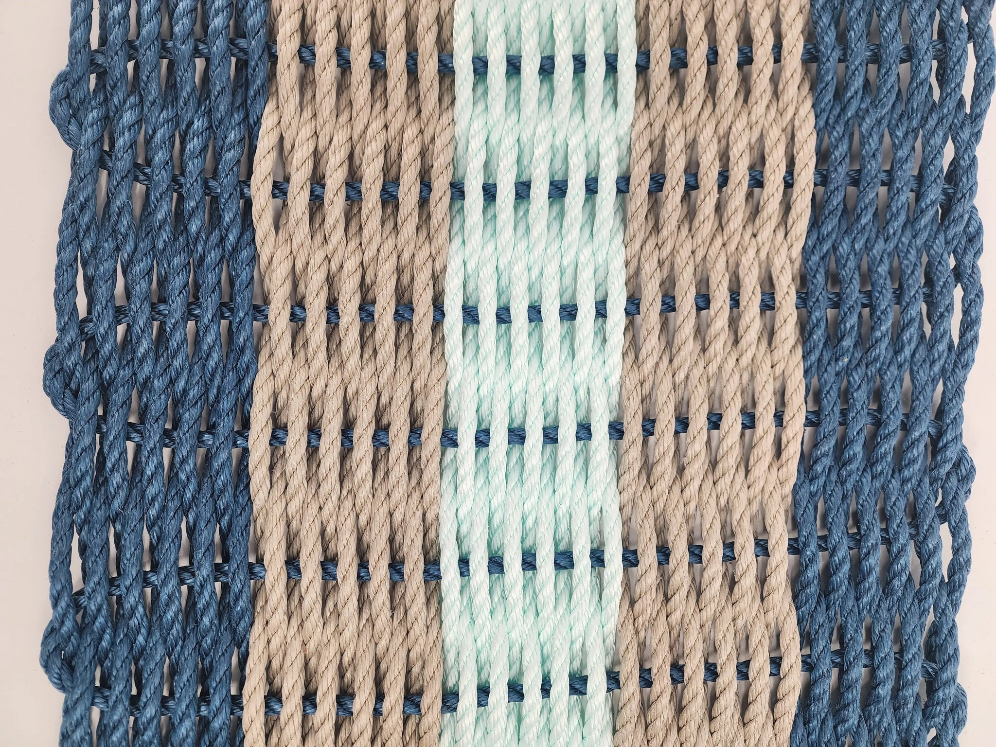 Five Stripe Rope Mat made with Lobster Rope Navy, Tan and Seafoam - FREE SHIPPING