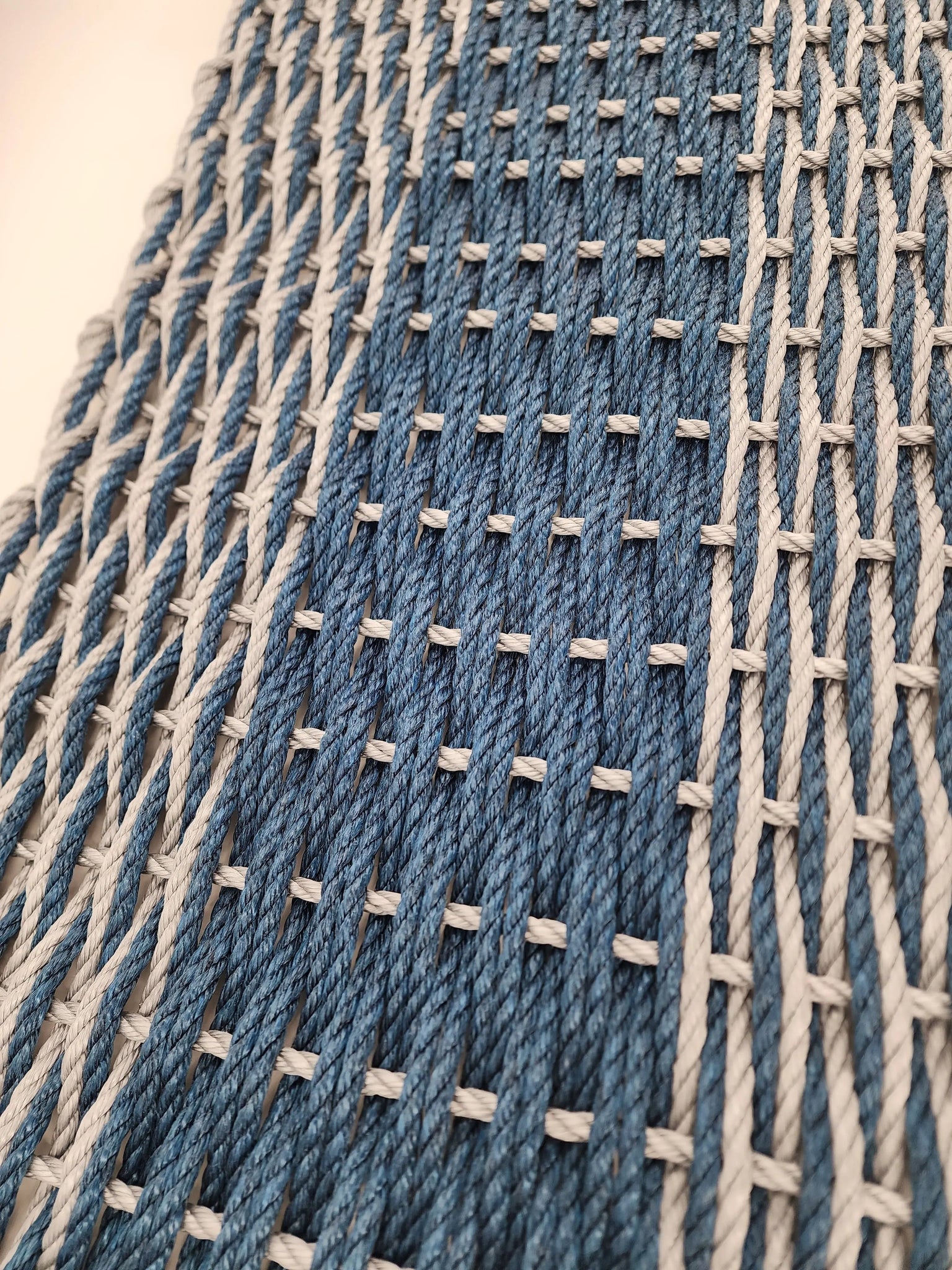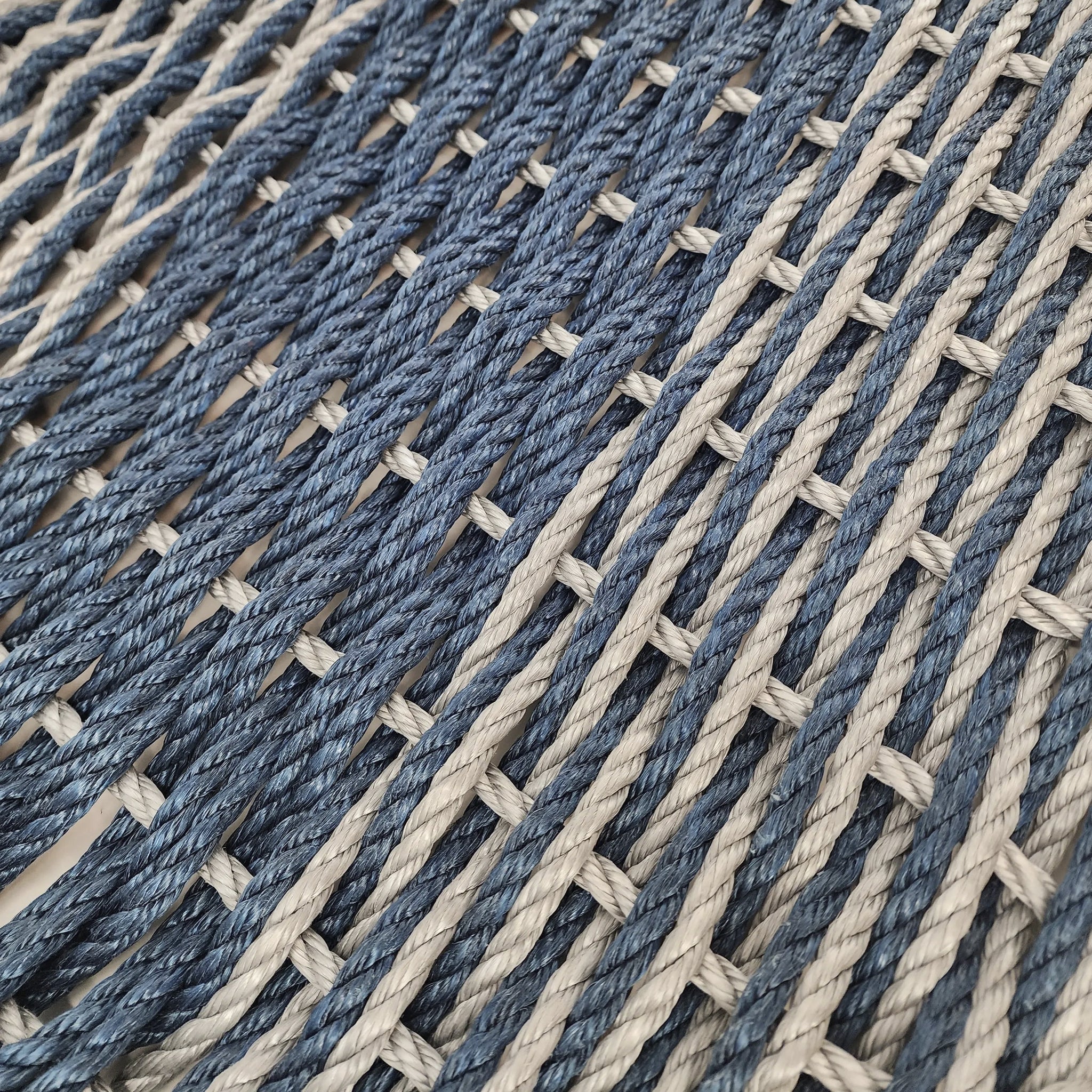 Large Navy Blue and Light Gray Lobster Rope Mat made with Lobster Rope, Double Weave, Vibrant, Long Lasting Durable - FREE SHIPPING