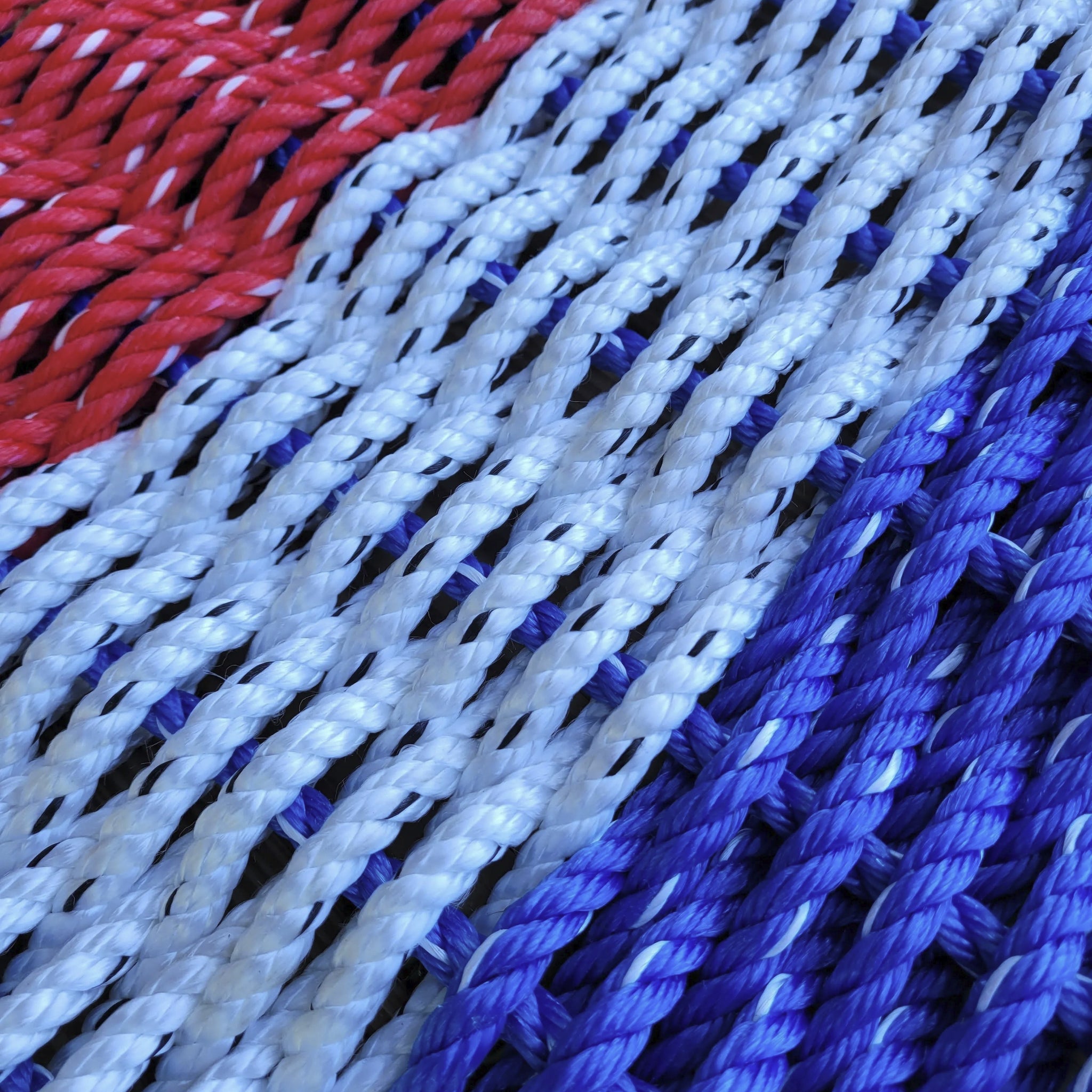 Celebrate coastal tradition with a patriotic twist! Handmade on the coast of Maine from authentic recycled lobster trap rope, this Red, White, and Blue Stripe Rope Mat is as durable as it is eye-catching. Tough, weather-resistant, and built to last for years, it’s perfect for porches, patios, decks, or entryways. The bold stripes add a vibrant nautical flair while helping keep dirt outside where it belongs. Eco-friendly and handwoven, each mat tells a story of craftsmanship, resilience, and American coastal heritage.