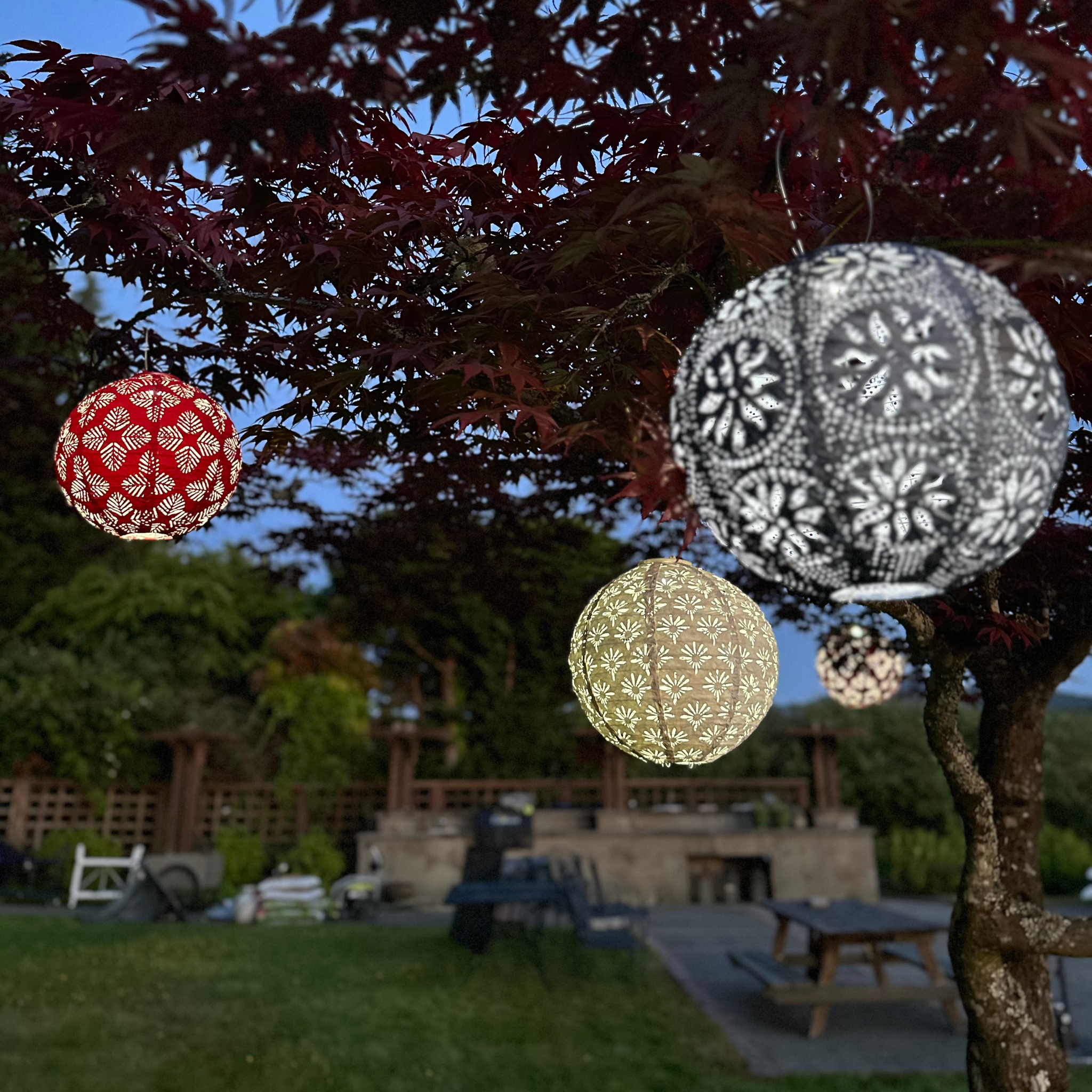 The lightweight weather-resistant DuPont™ Tyvek® material is the hallmark of the Stella line and these lanterns are tough enough to show off their lacy beauty outdoors all year round. The solar lanterns charge during the day and automatically turn on at dusk each night.