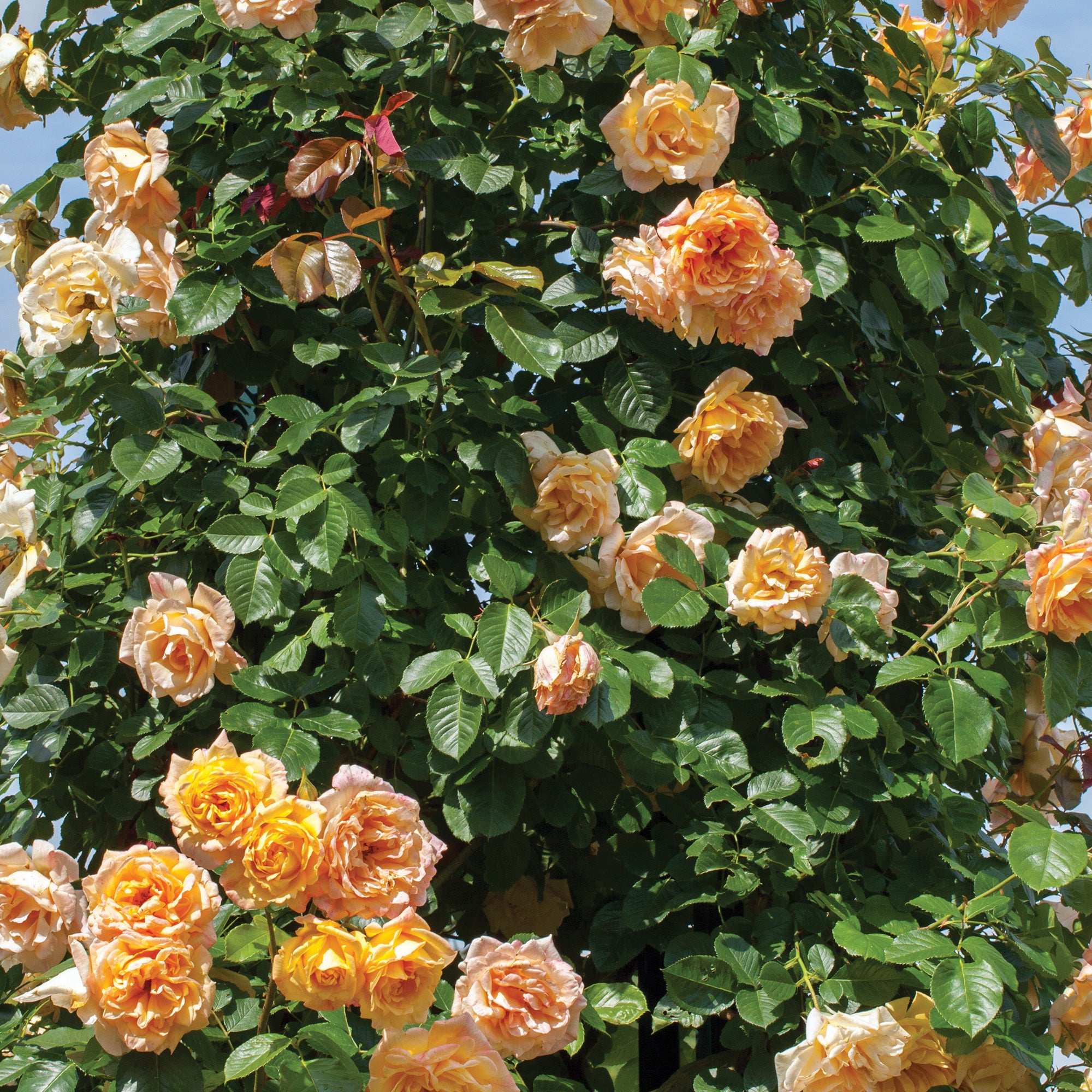 A floriferous, reblooming yellow climbing rose with lovely bi-color yellow and pink blooms that hold up well even in high heat areas. Superb disease resistance, coupled with vigorous growth, makes this a welcome addition to any garden. Garden Sun grows to 10-12 feet tall and 6-7 feet wide. Ideal for covering fences, trellis structures, or arbors. Part of the Bloomables Collection, this yellow climbing rose will not disappoint.
