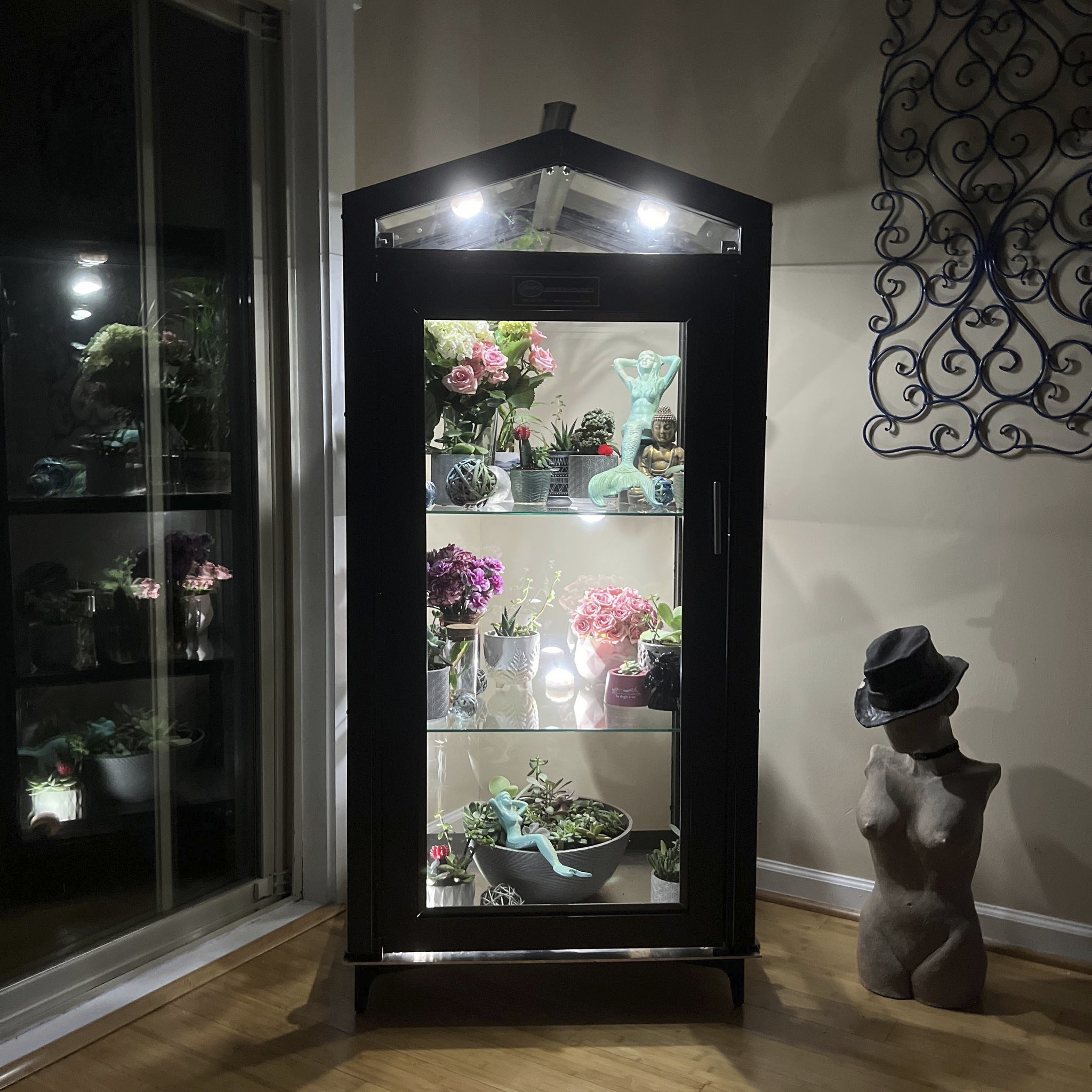 The Garden Curio Grow Year Round Indoor Outdoor Mini Greenhouse. The only cabinet with a lifetime warranty built to last forever all glass and aluminum. Whether you want to grow tropical plants in your living room or herbs & micro greens in your kitchen. Used as a display case Whether it’s for jewelry, figurines, antiques, apparel, tools, plants, etc. Whether you’re using it for a Reptile Zoo, pet cage or just for nature observation. This all glass & aluminum Terrarium is high quality and offers a safe place to keep your pet & reptile friends.