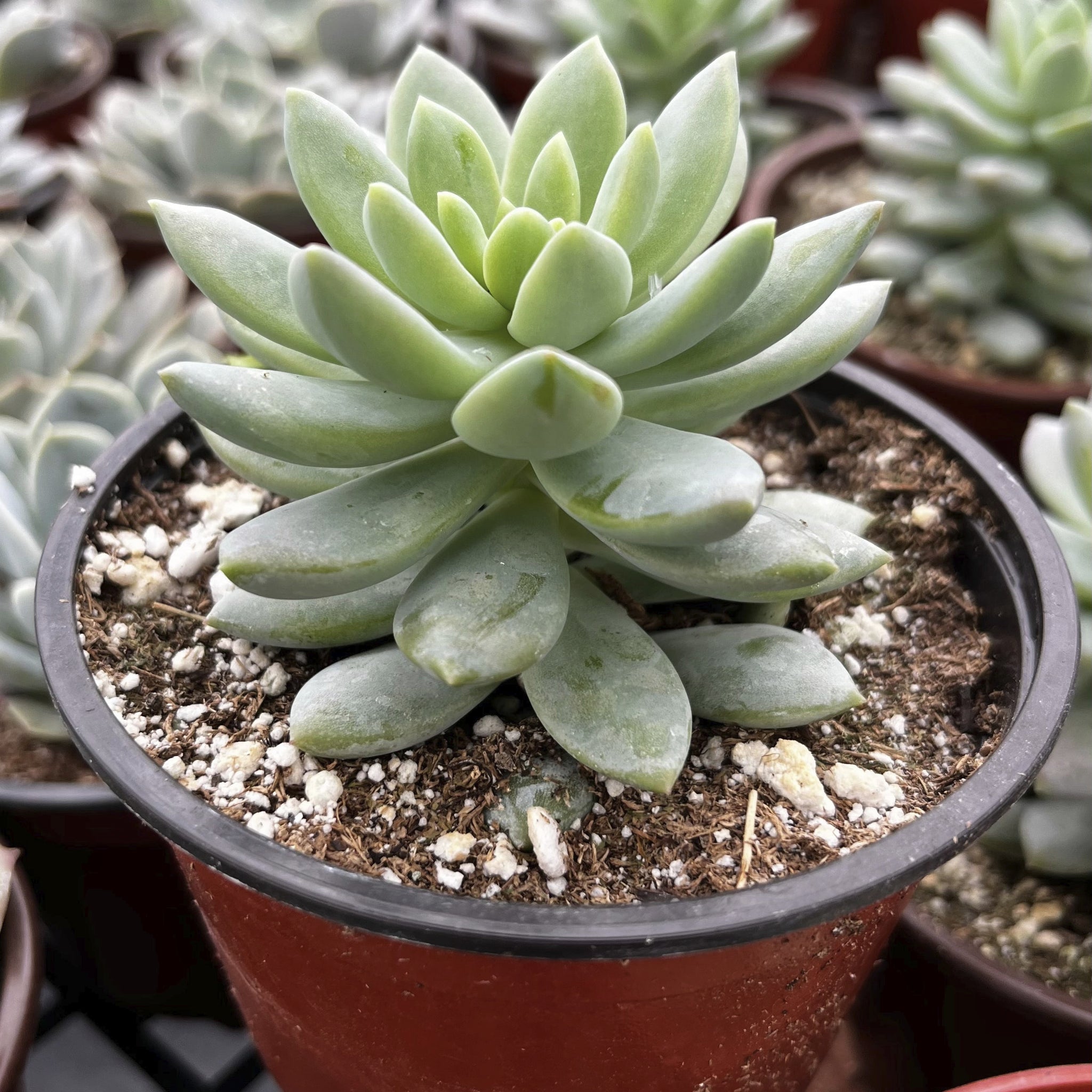 Introducing the Graptopetalum Petal, a delicate succulent that enchants with its soft, pastel hues. Its plump, pointed leaves form graceful rosettes in shades of pale pink, lavender, and silvery green, creating a dreamy, ethereal look. Perfect for arrangements, container gardens, or as a stand-alone piece, this succulent is as versatile as it is beautiful.