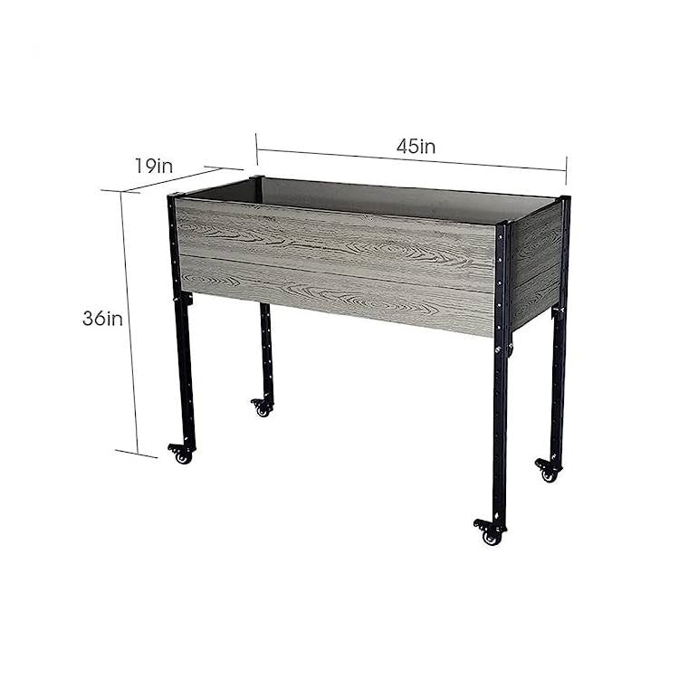 This Mobile Elevated Gray/Black Raised Garden Planter Bed w/ Wheels beautifies limited space with the ideal gardening height, creating a convenient gardening experience without bending over and protecting plants from being reached by pests. Designed with the height of 36 inches. Comes with 4 caster wheels, this elevated planter can be moved to fit your garden layout design and make sure that your plants get the right amount sun and shade.