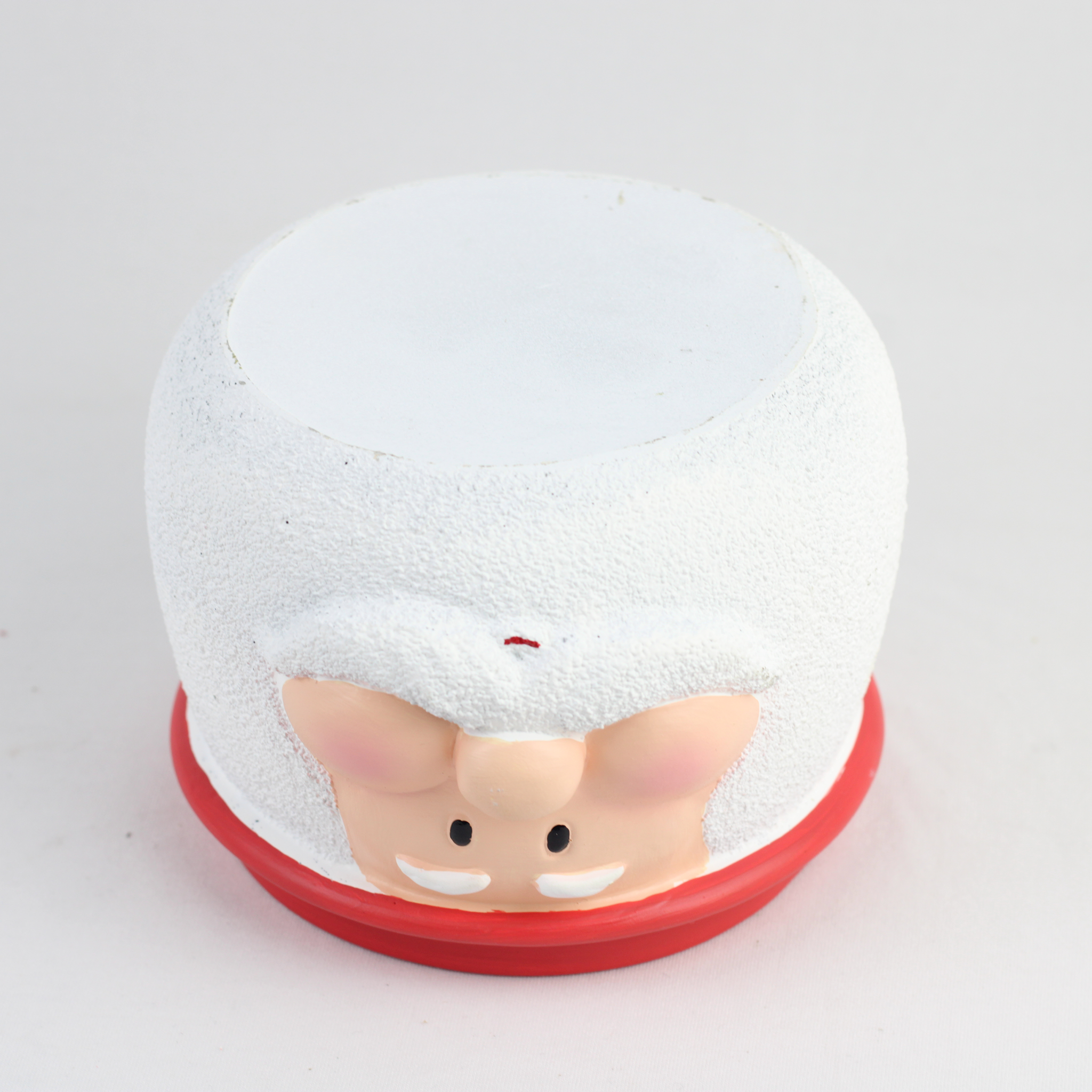 - Hand-painted Santa and Snowman faces with bright red rims