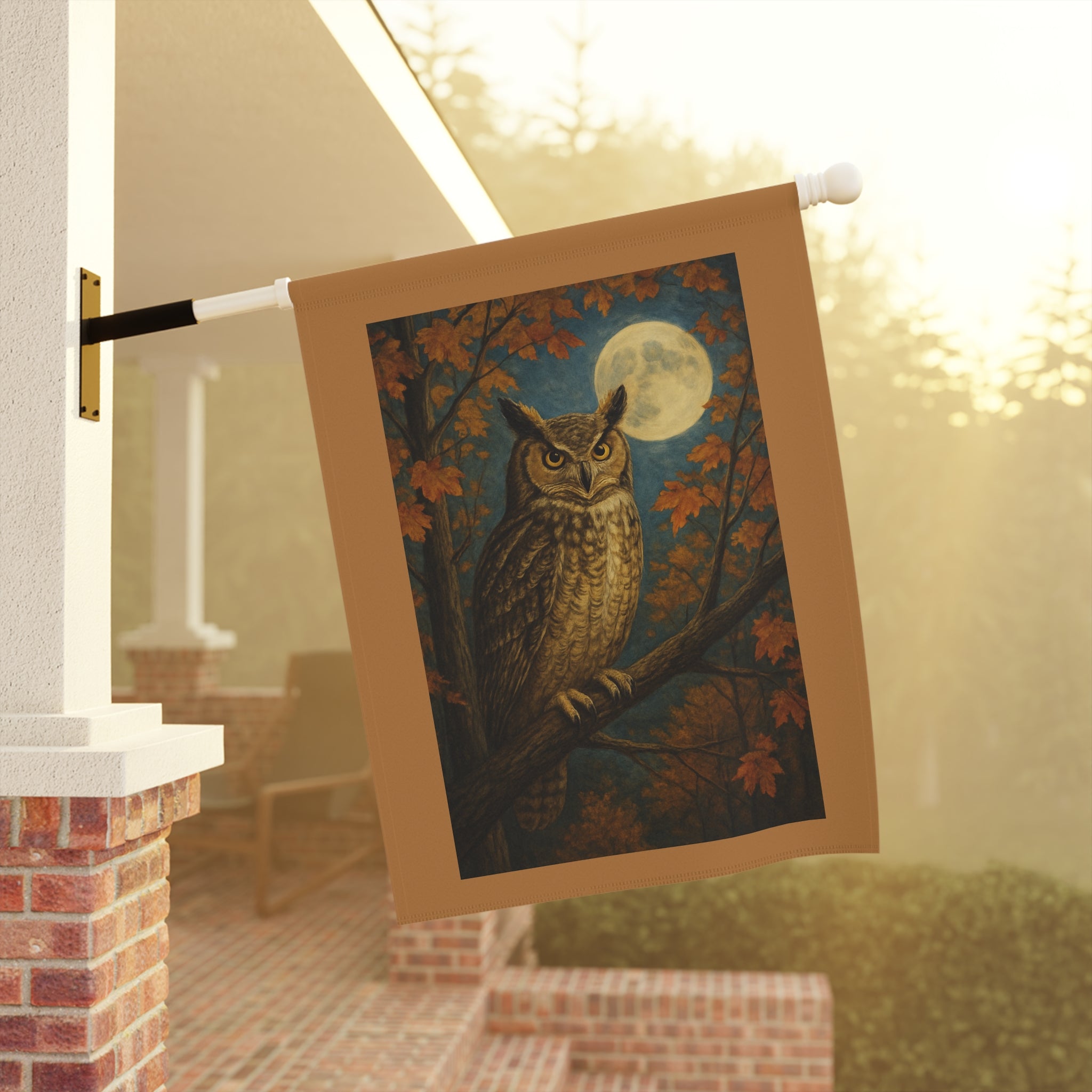 Autumn Owl with Full Moon Garden Banner