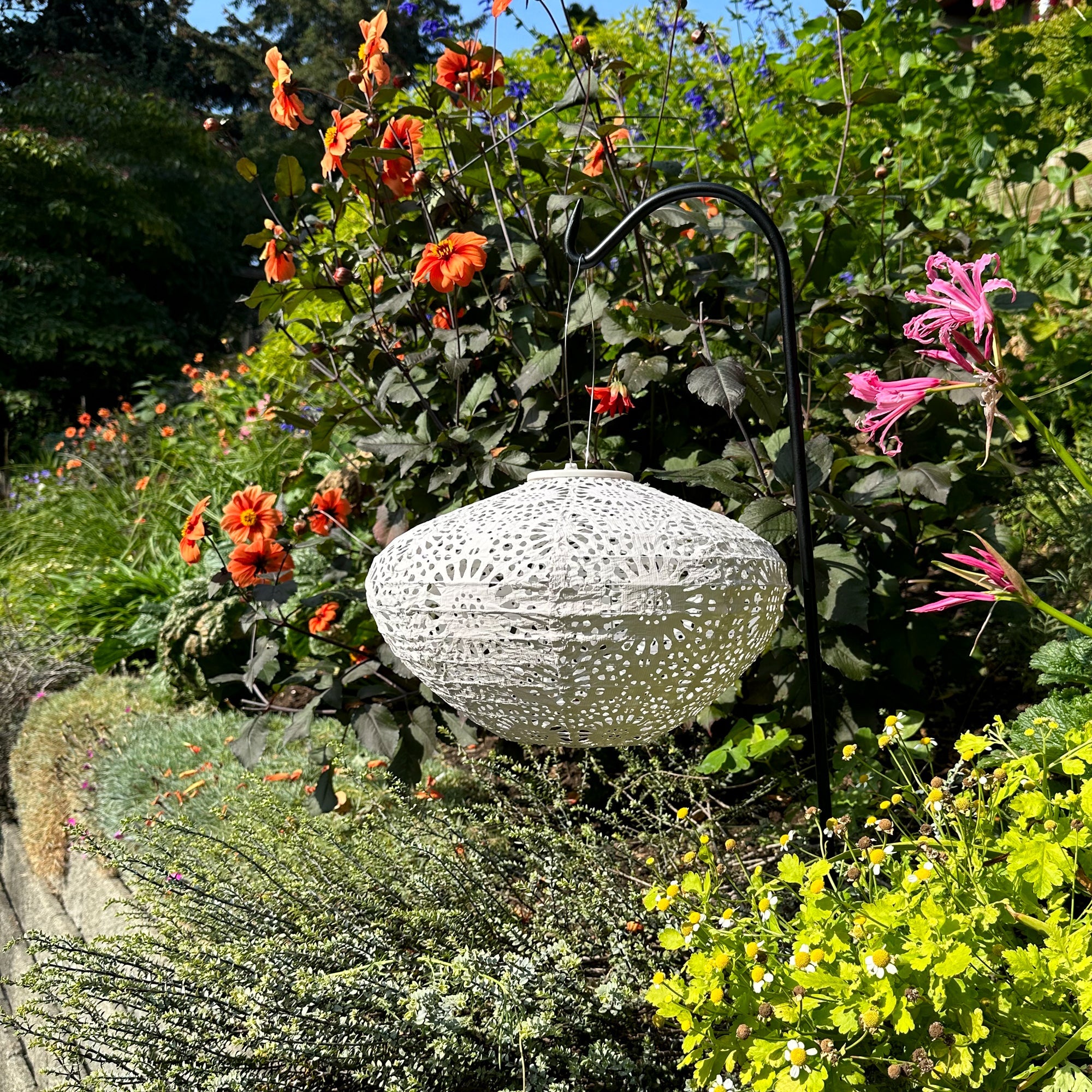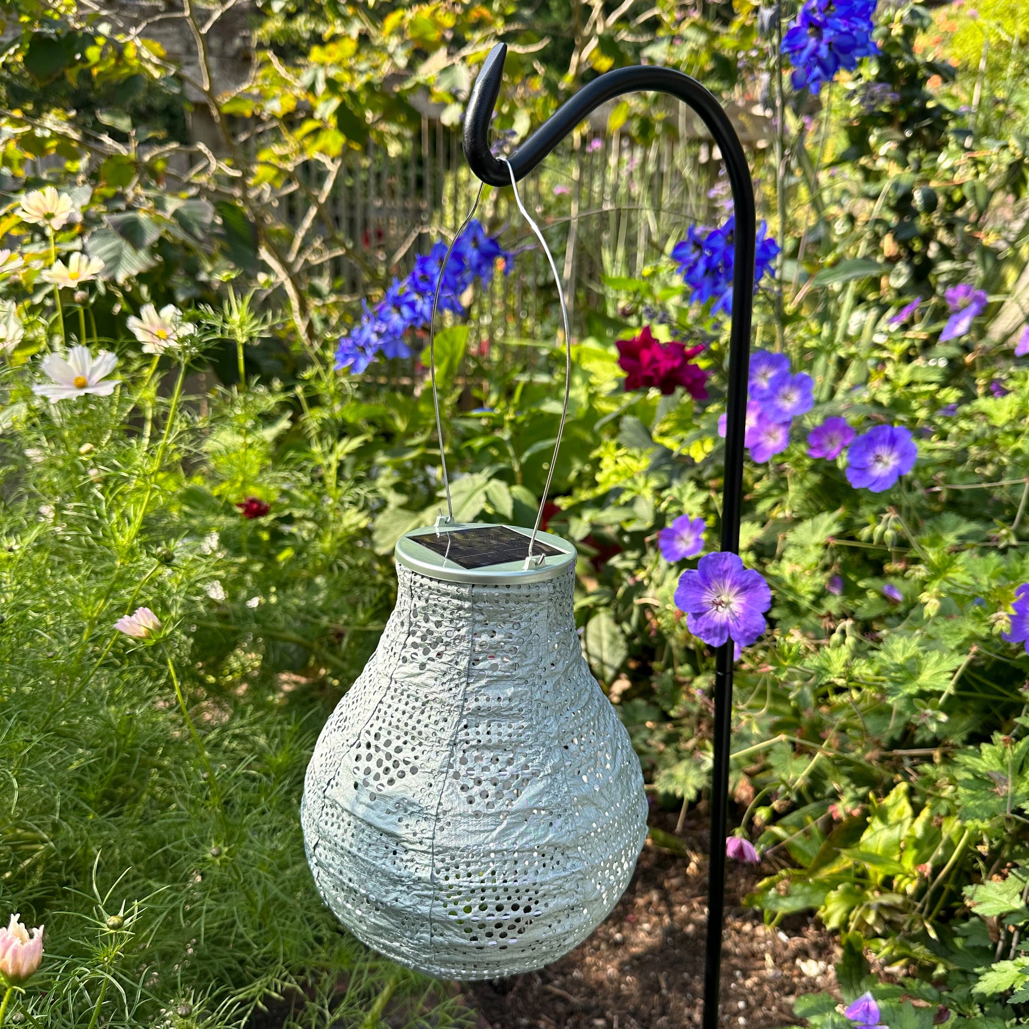 The Shepherd's hook is a multi-tasking hook ideal for hanging solar lighting and garden art. Specifically designed to be able to accommodate our best-selling solar lanterns, This sturdy hook can be planted anywhere and breaks down into three pieces for storage. Middle section can also be removed for shorter height.
