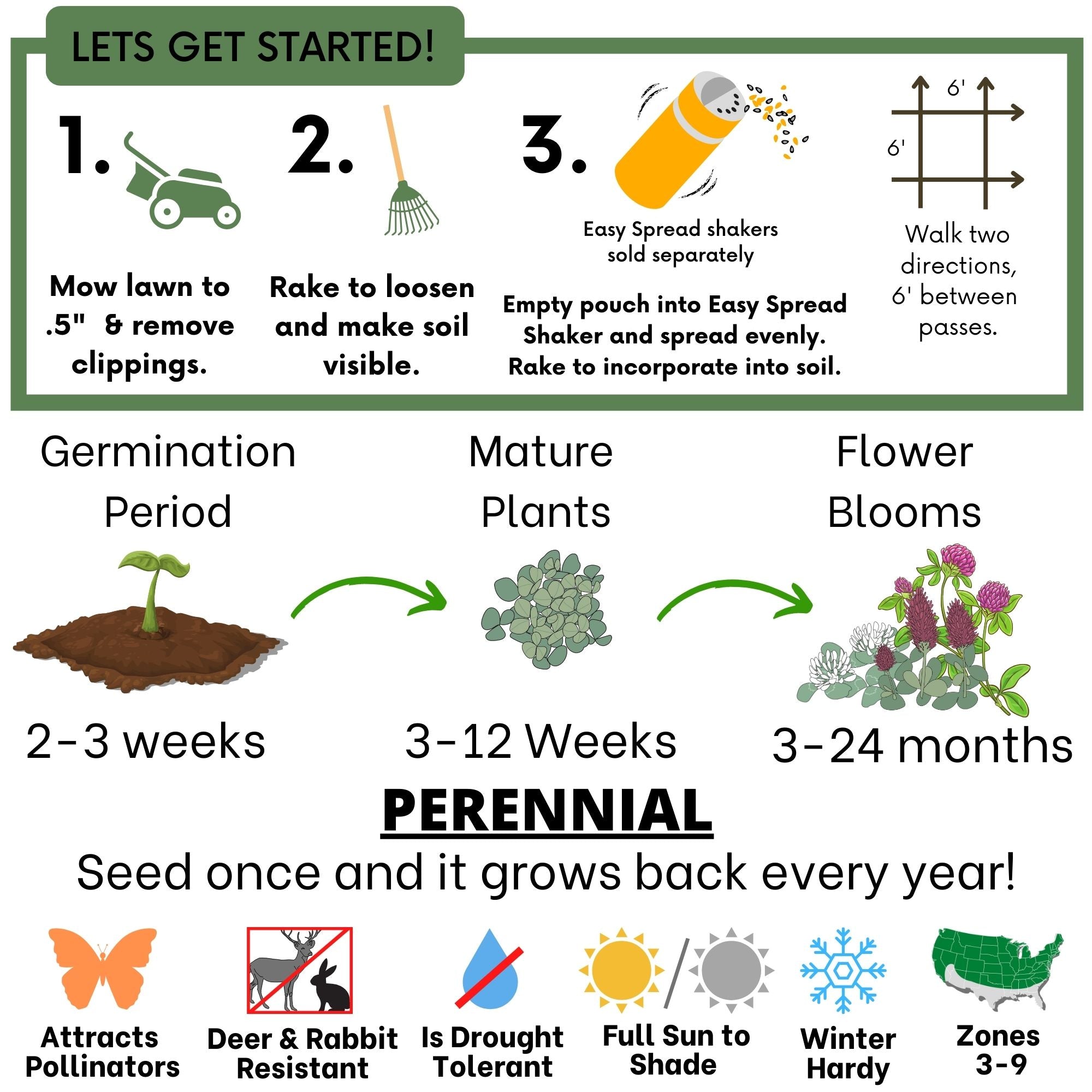 - Better For Your Family & The Environment -- Our specialty flowering lawn seed is kid and pet friendly. It attracts beneficial pollinators while reducing your property's carbon footprint!