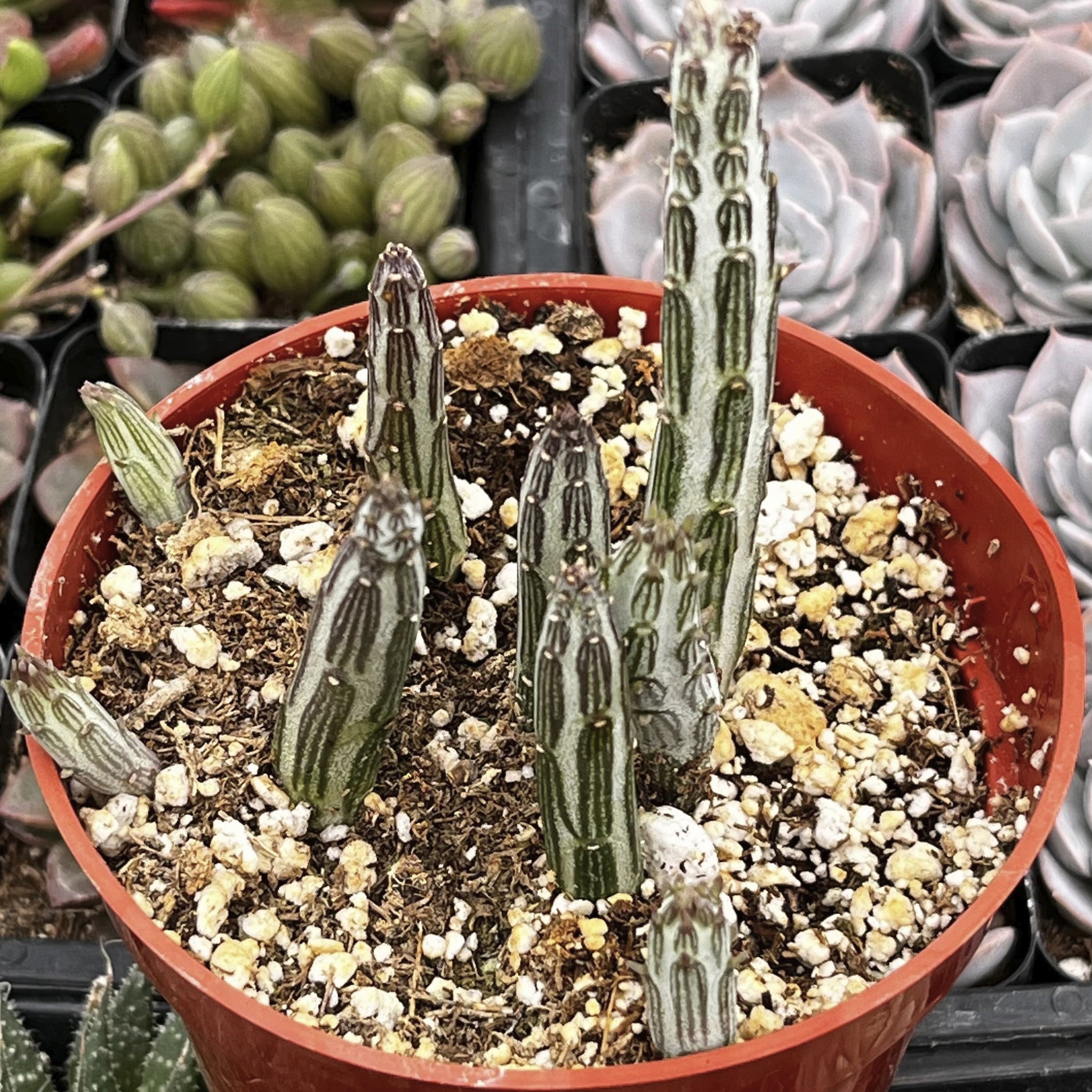 With its unusual shape and easy-care nature, Senecio Stapeliiformis is perfect for succulent arrangements, rock gardens, or as an indoor accent piece.
