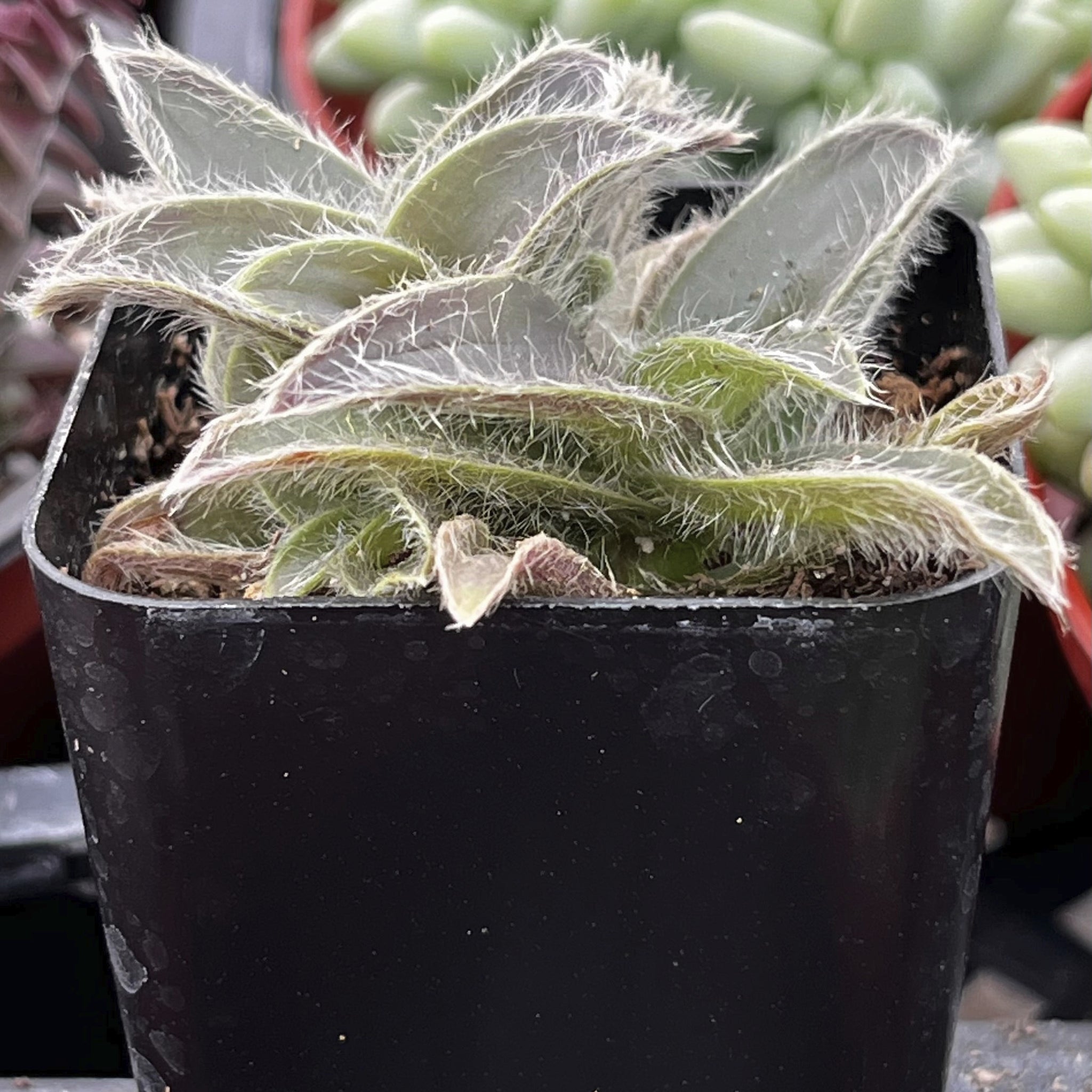 Included in Purchase: You will receive 1 (2 inch) Kitten Ears Cyanotis Somaliensis succulent. This succulent will be shipped fully rooted with a plastic pot and soil. Quick grow and care guide will also be included.