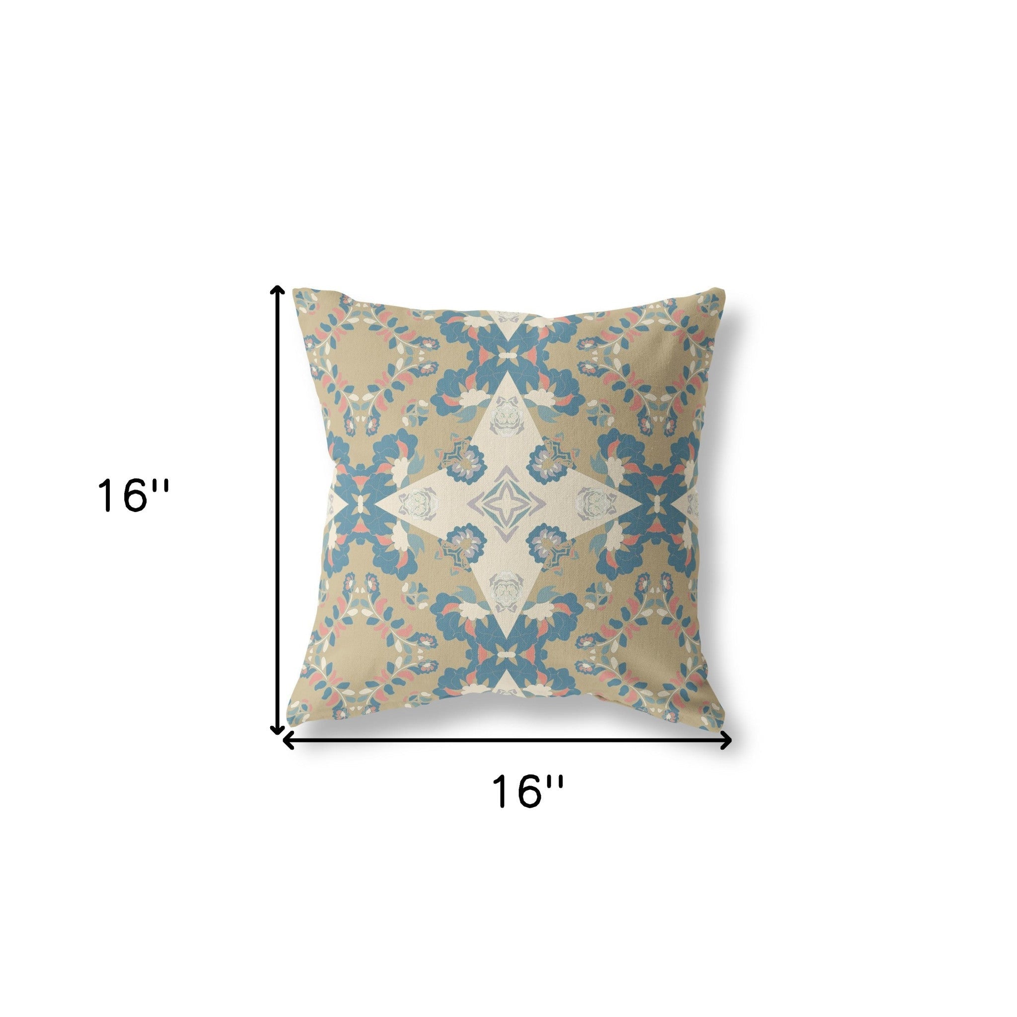 16" X 16" Muted Teal Zippered Geometric Indoor Outdoor Throw Pillow - FREE SHIPPING