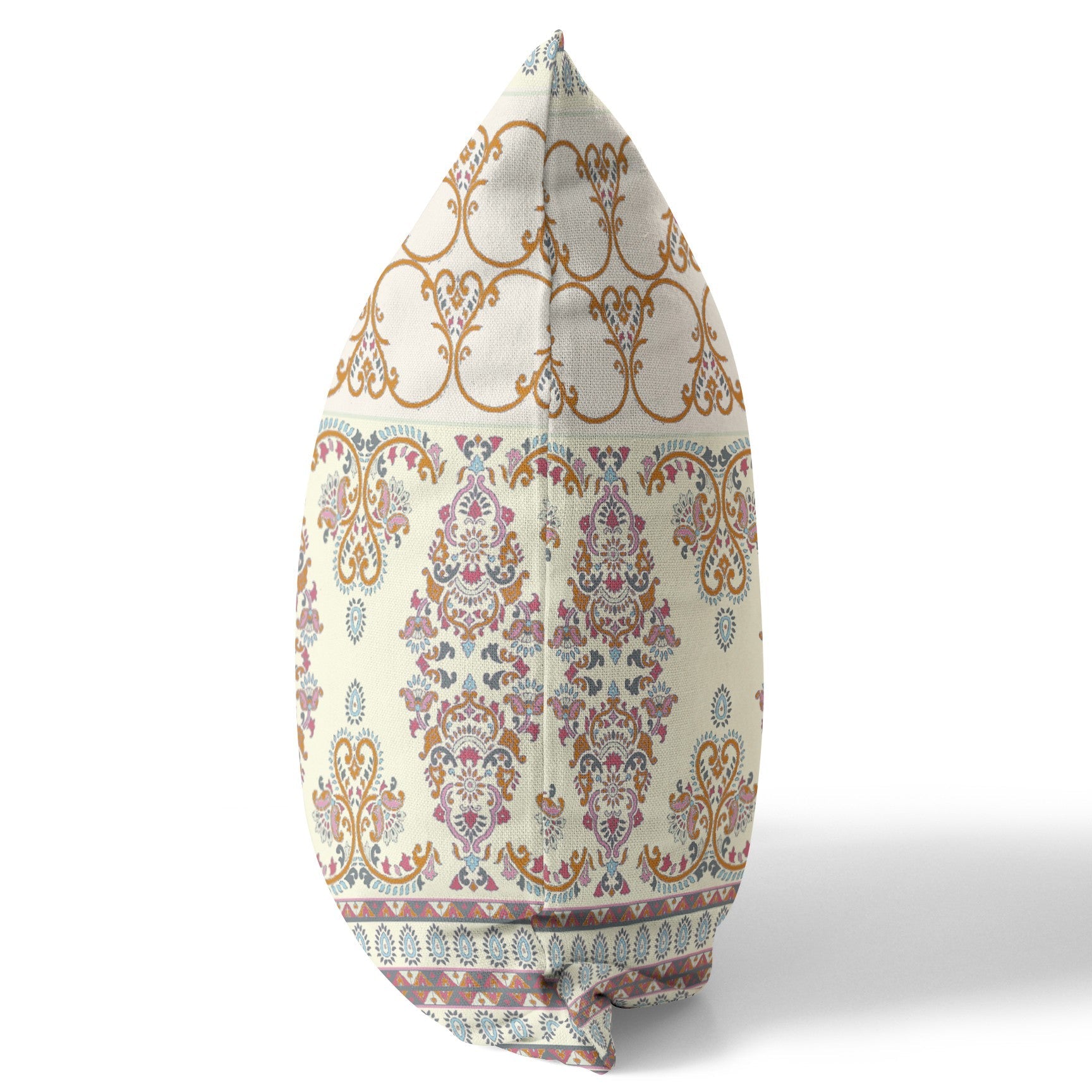 Bring a bit of fashion and zip to your space with this eye-catching and comfy 16" x 16" off white and orange zippered geometric indoor outdoor throw pillow. This off white and orange hued piece represents quality construction, expertly made from durable suede that is not only long lasting but soft to the touch as well. Durable and rugged enough for outdoors but can still be used inside as well. Decorative pillows are a great way to change up the look and feel of your space easily and quickly. 5" H x 16" W x 16" D