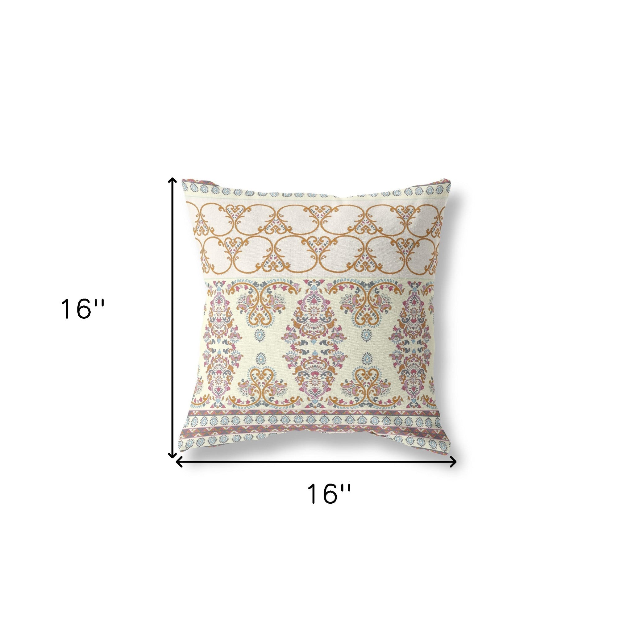 16" X 16" Off White And Orange Zippered Geometric Indoor Outdoor Throw Pillow - FREE SHIPPING