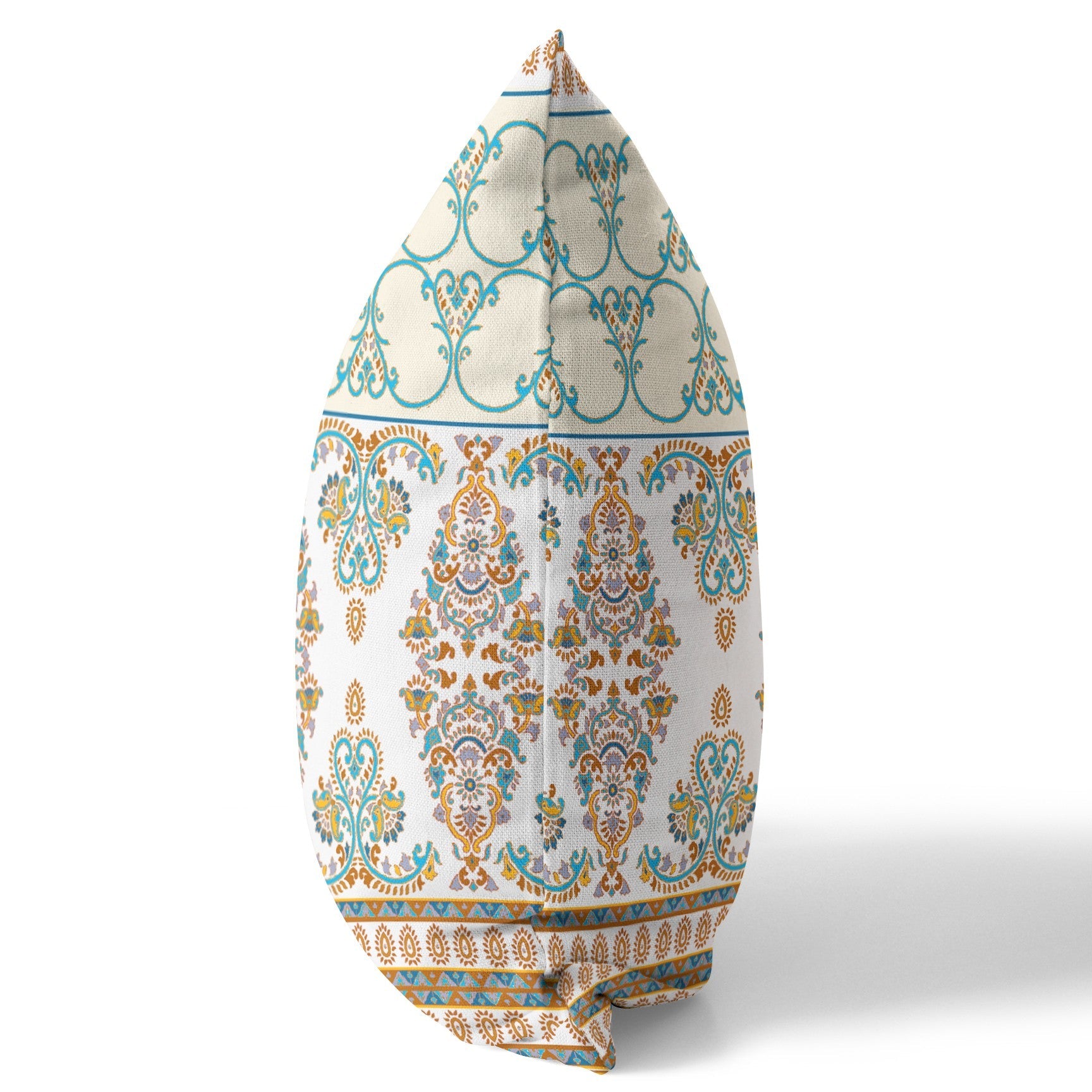 Unique and decorative, this comfortable 16" x 16" orange and teal zippered geometric indoor outdoor throw pillow will leave a lasting impression. This orange and teal colored decorative pillow is made from high grade suede that is durable and long lasting. Will add some color and dimension to your space indoors or out. Great to use on its own or mix with other decorations for the perfect look. 5" H x 16" W x 16" D