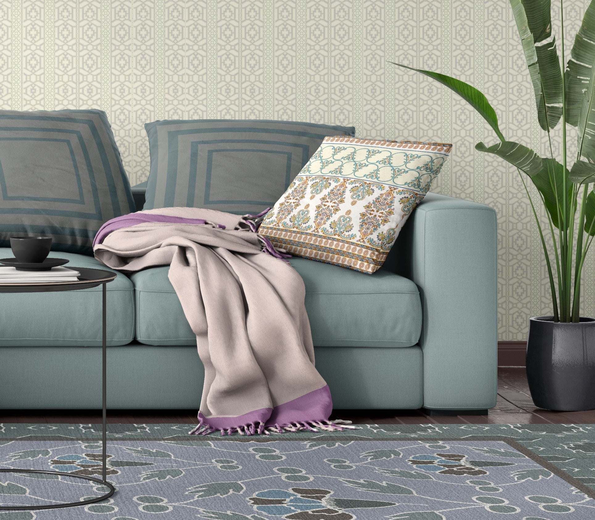 16" X 16" Orange And Teal Zippered Geometric Indoor Outdoor Throw Pillow - FREE SHIPPING