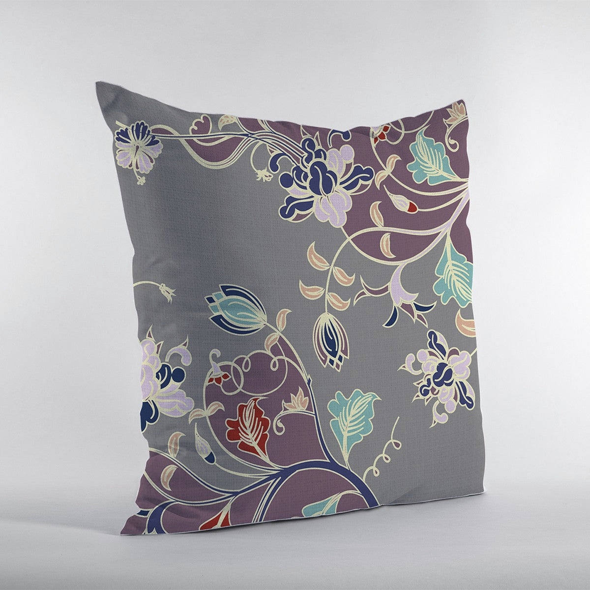 18" Purple Gray Garden Indoor Outdoor Throw Pillow - FREE SHIPPING