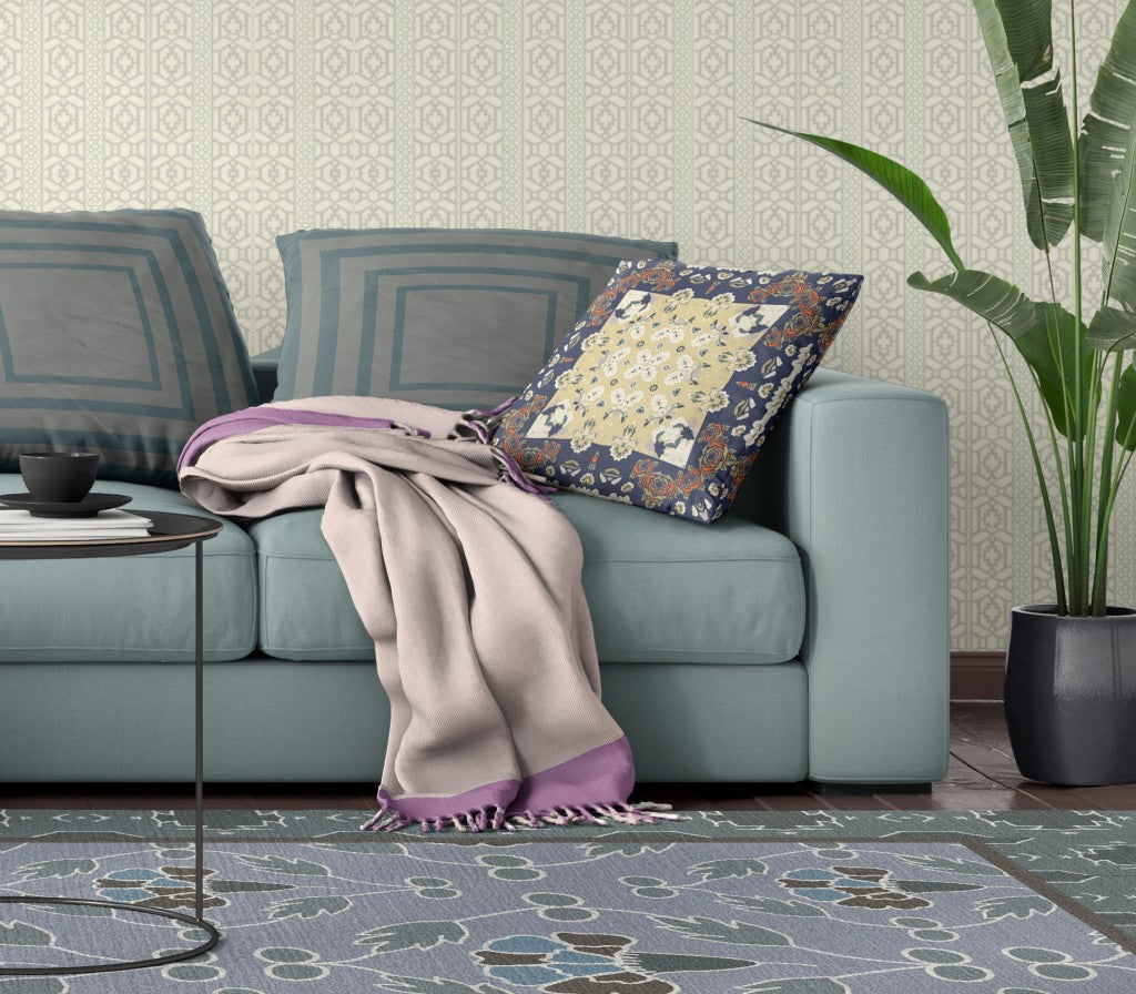 This 18" x 18" blue and yellow zippered geometric indoor outdoor throw pillow will add a beautiful decorative accent to your decor. This soft and durable decorative pillow is expertly made of high grade, long lasting suede in a blue and yellow coloration. Will add some color and dimension to your space indoors or out. A great decorative accessory for your favorite chair or to accent your sofa. 5" H x 18" W x 18" D