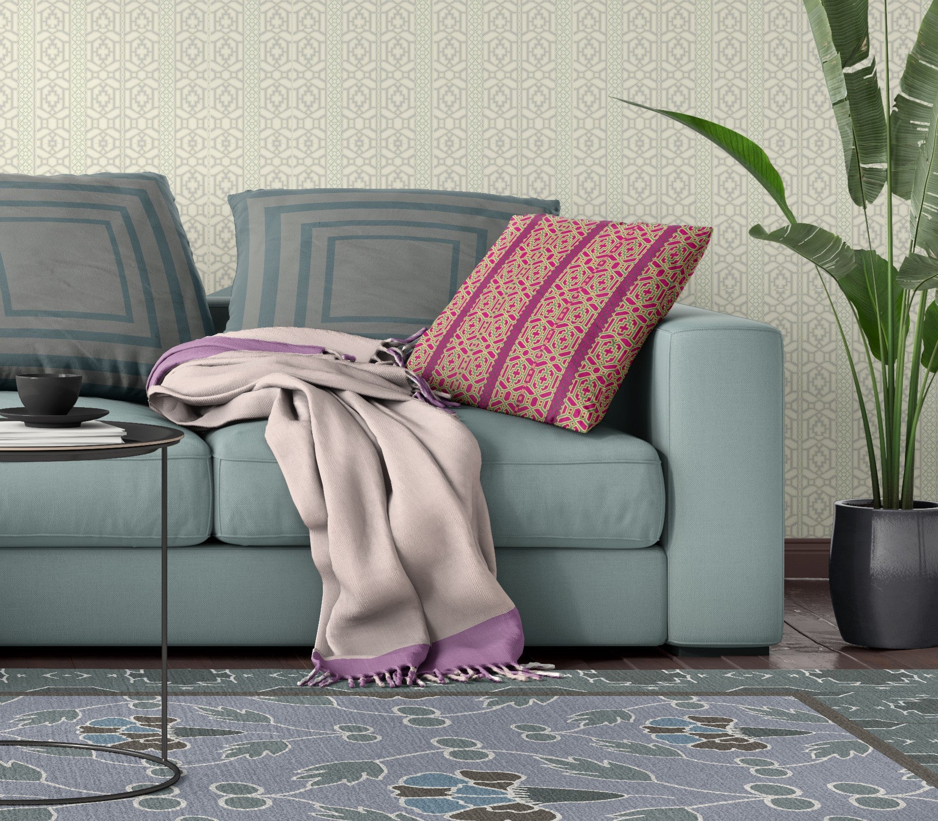 Add an air of fashion to your room and rejuvenate the space with this cute and fashionable 18" x 18" pink and green zippered geometric indoor outdoor throw pillow. The pink and green coloring of the extremely durable and long lasting suede will add dimension and texture to your space. Durable and rugged enough for outdoors but can still be used inside as well. Decorative pillows are a great way to change up the look and feel of your space easily and quickly. 5" H x 18" W x 18" D