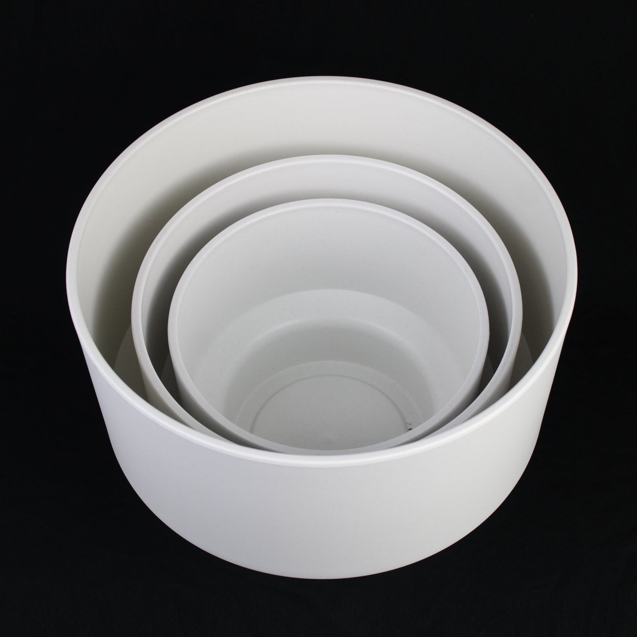 Elevate your greenery with this 3-piece White Plastic Planter Pot Set, designed with a sleek cylindrical body and raised pedestal base. These lightweight yet durable planters are perfect for both indoor and outdoor use, adding a modern touch to any space.