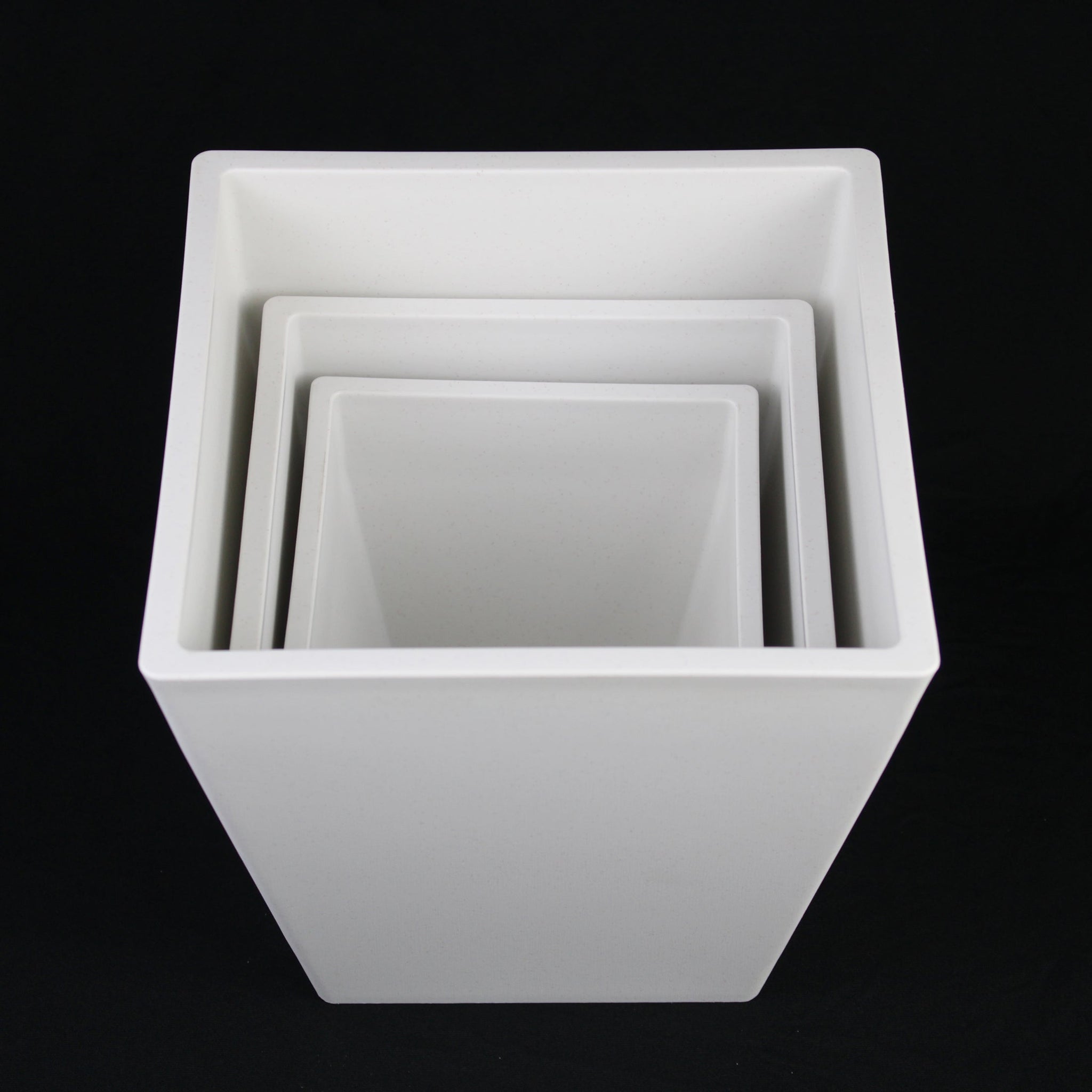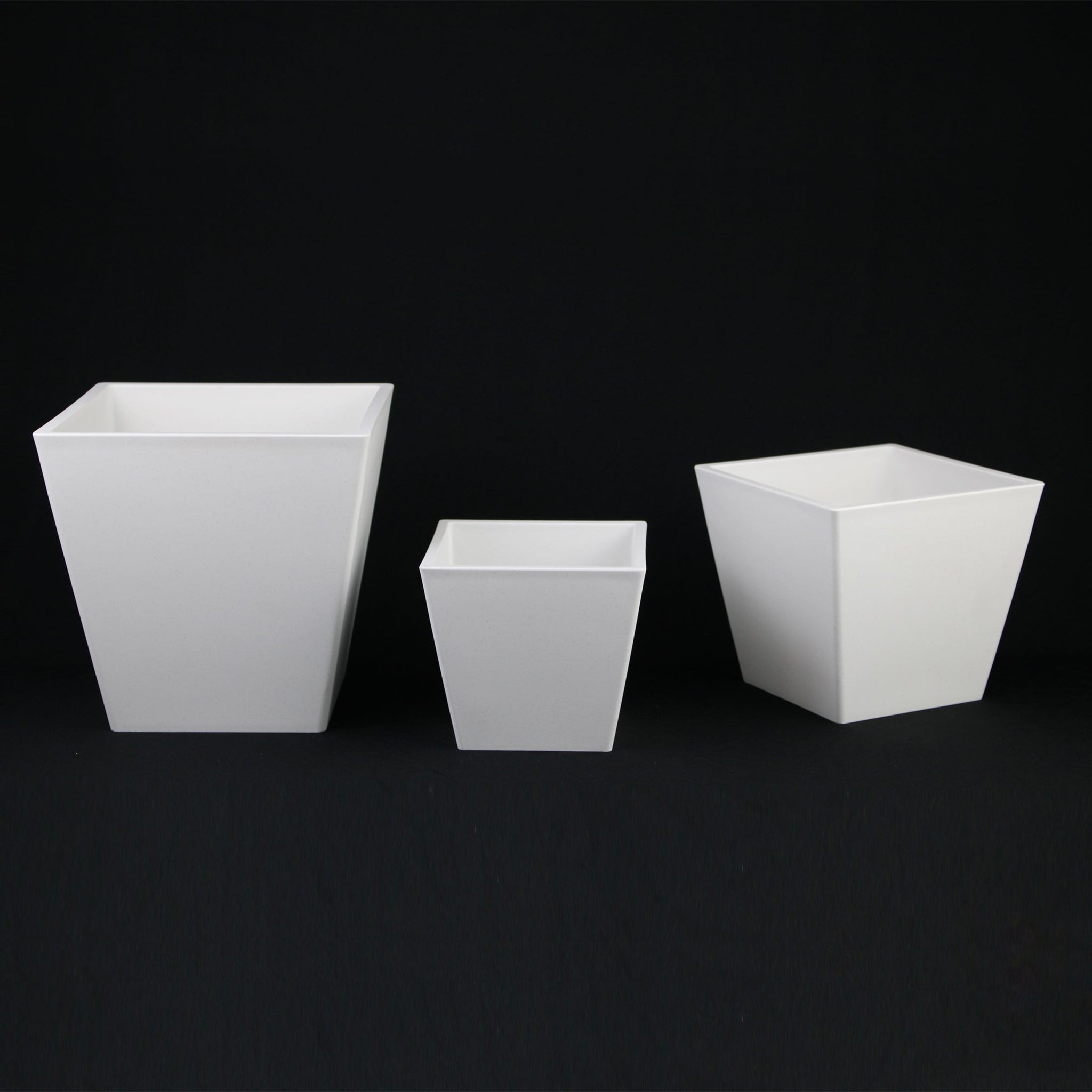 3-Piece White Plastic Square Planter Pot Set – Modern Tapered Design