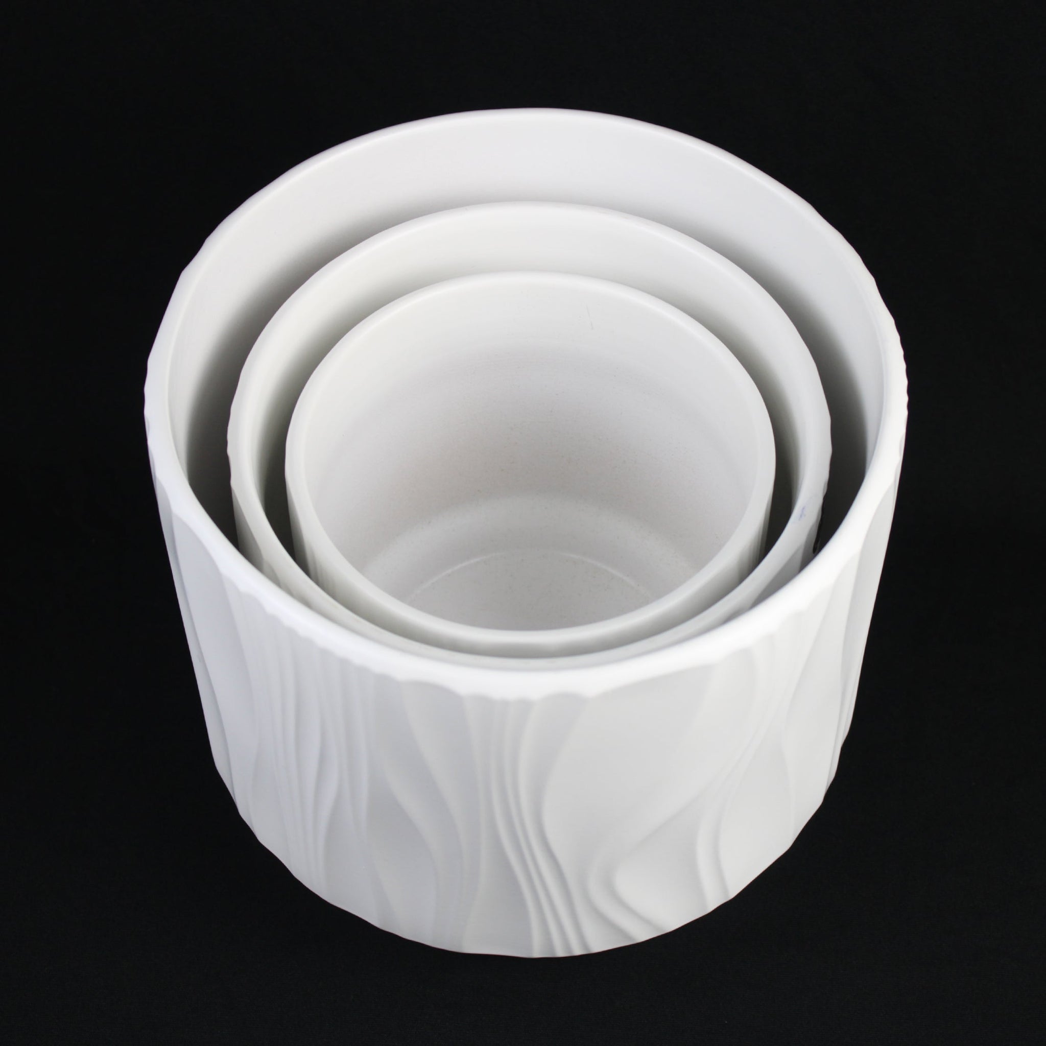 3-Piece White Stoneware Planter Pot Set with Embossed Texture