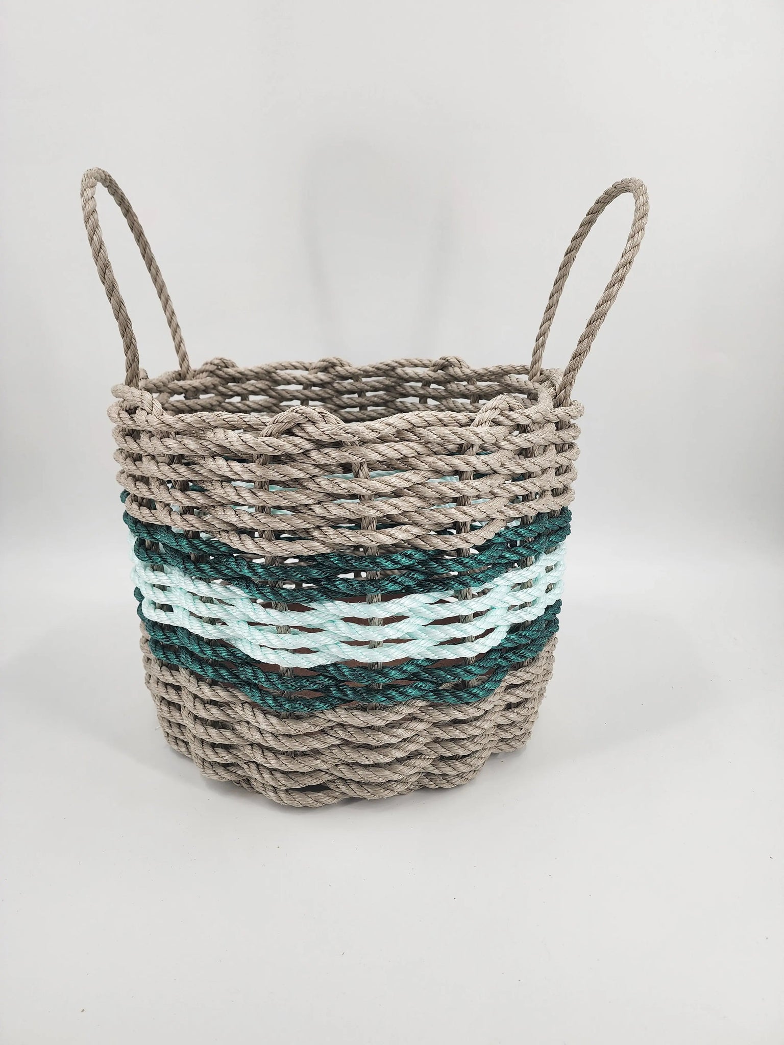 The soothing tan and seafoam color combination makes this basket a stylish accent for any room. Use it to store toys, blankets, laundry, garden tools, or beach essentials—its sturdy construction is ready for it all. With its nautical flair and authentic craftsmanship, this rope basket brings a piece of Maine’s seafaring tradition right into your home.