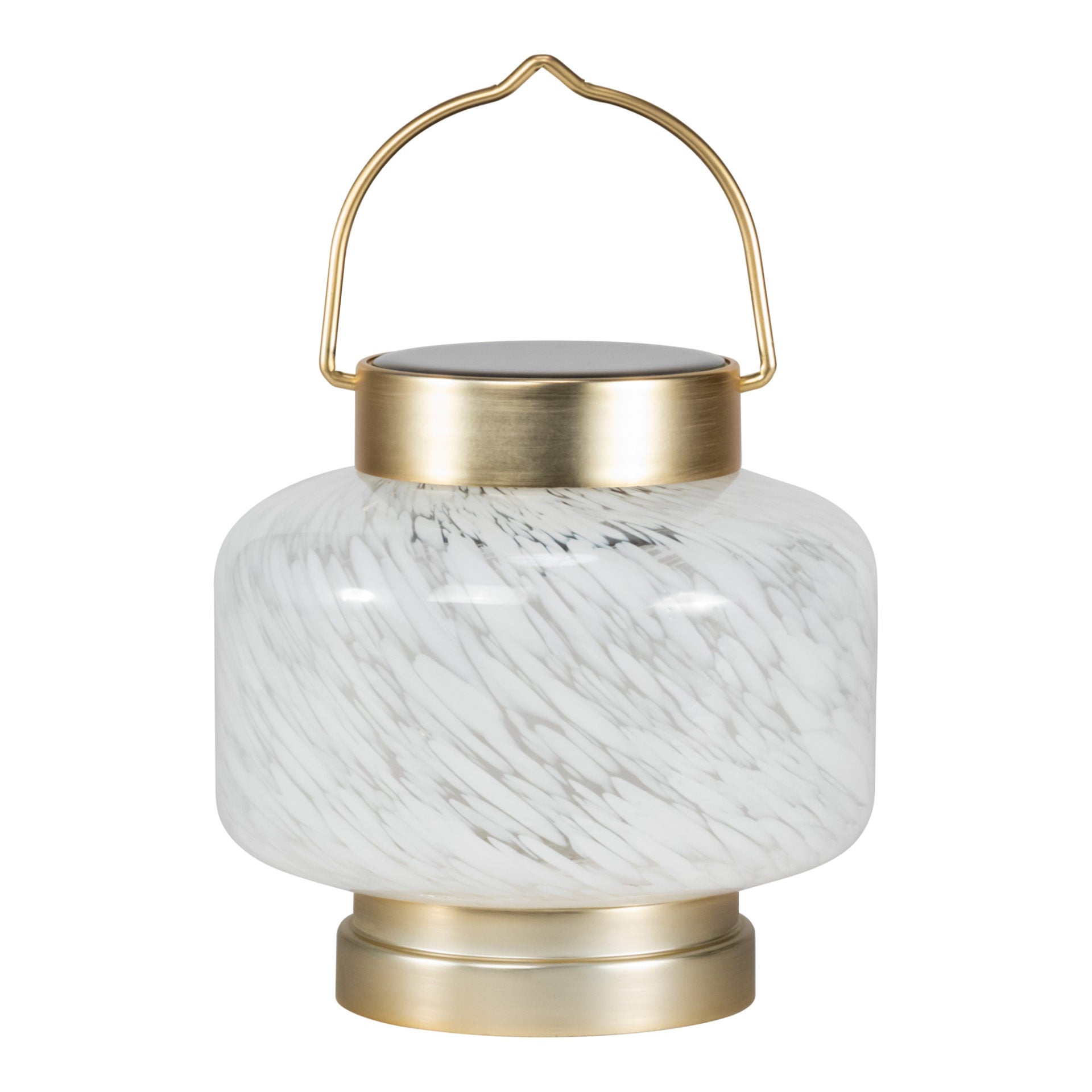By day, the Boaters Lantern collects sunlight with its built-in solar panel; by night, it automatically shines with a warm LED light that mimics the inviting ambiance of candlelight. Each lantern is hand-blown with tones of white glass and available in two distinctive shapes, making it both a source of light and a unique piece of outdoor décor.