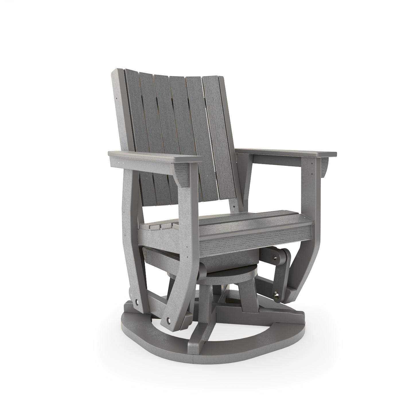 Smooth-gliding outdoor swivel chair crafted from durable HDPE lumber—perfect for patios, porches, decks, and covered outdoor living spaces.