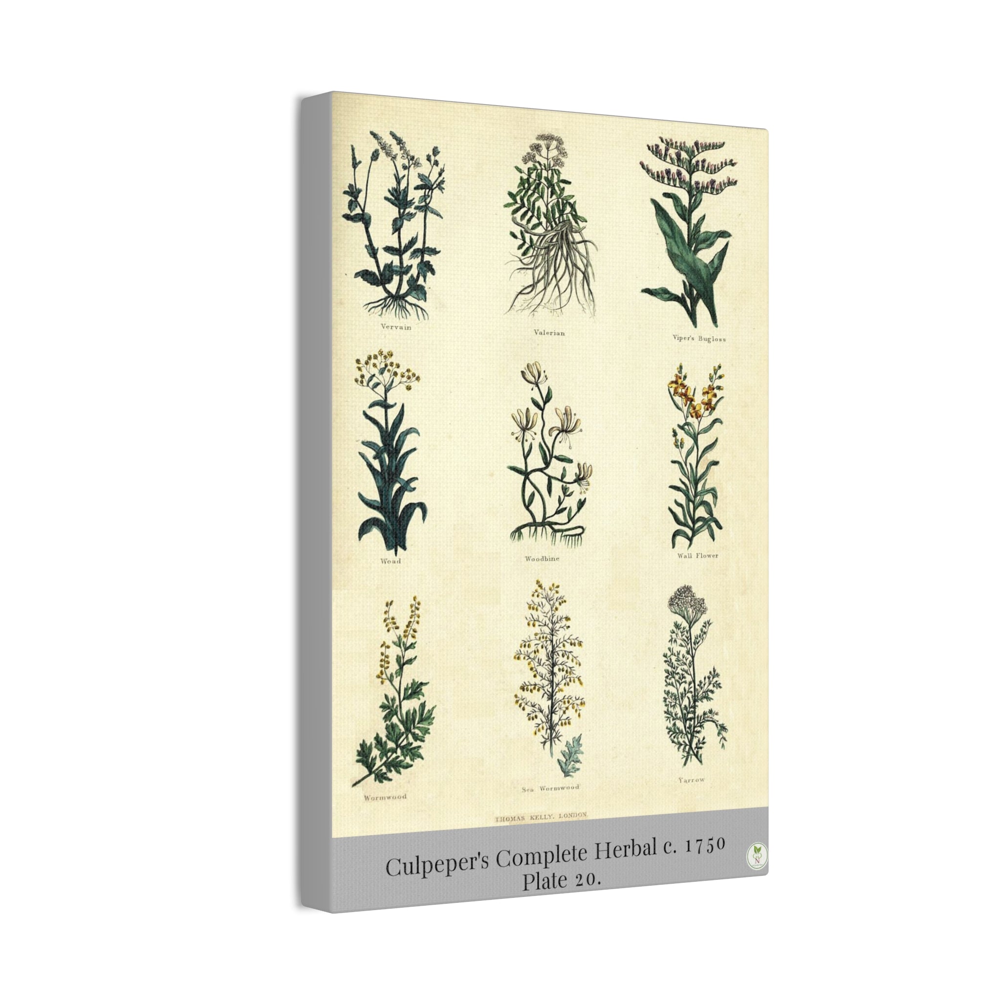 Culpeper’s Complete Herbal c.1750, Plate 20 Botanical Engraving Reproduction on Canvas