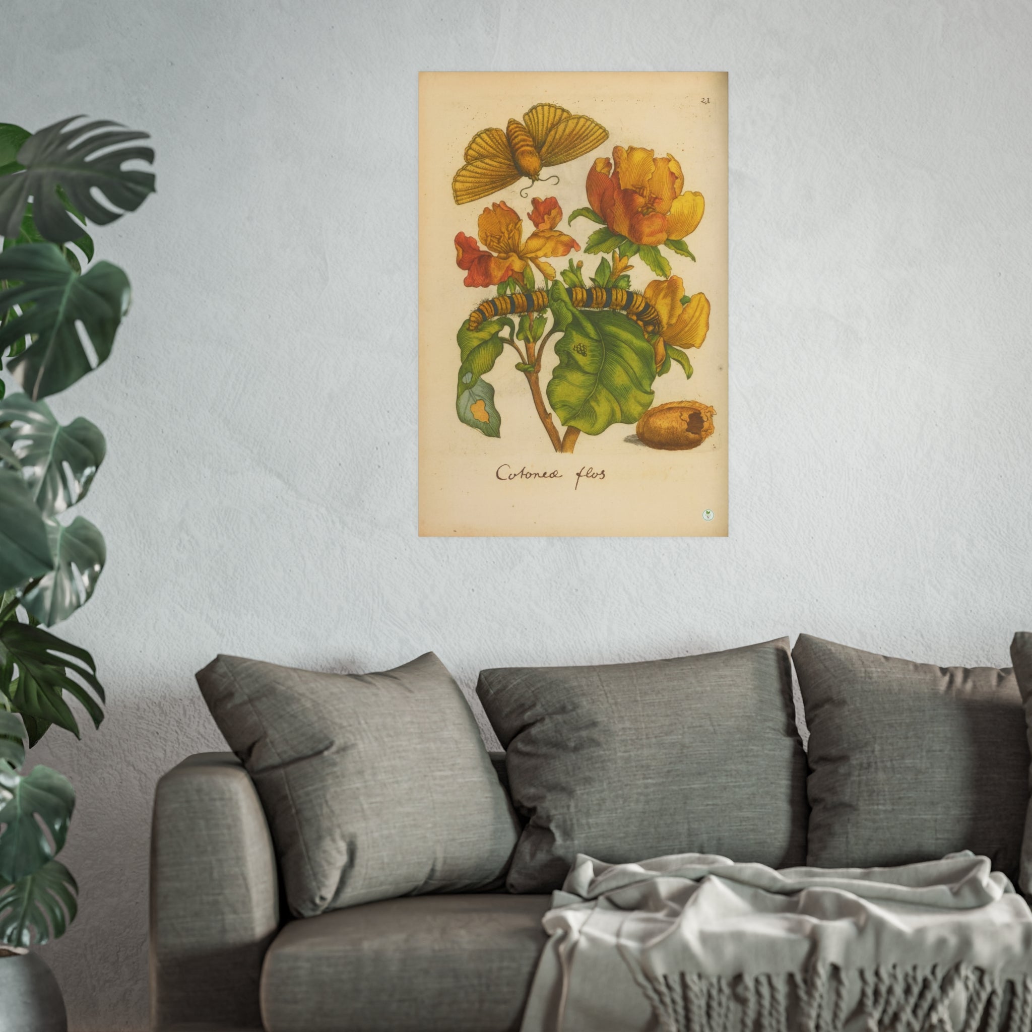 Cotonea Flos Blossoming Flower with Caterpillar and Cocoon from Erucarum ortus