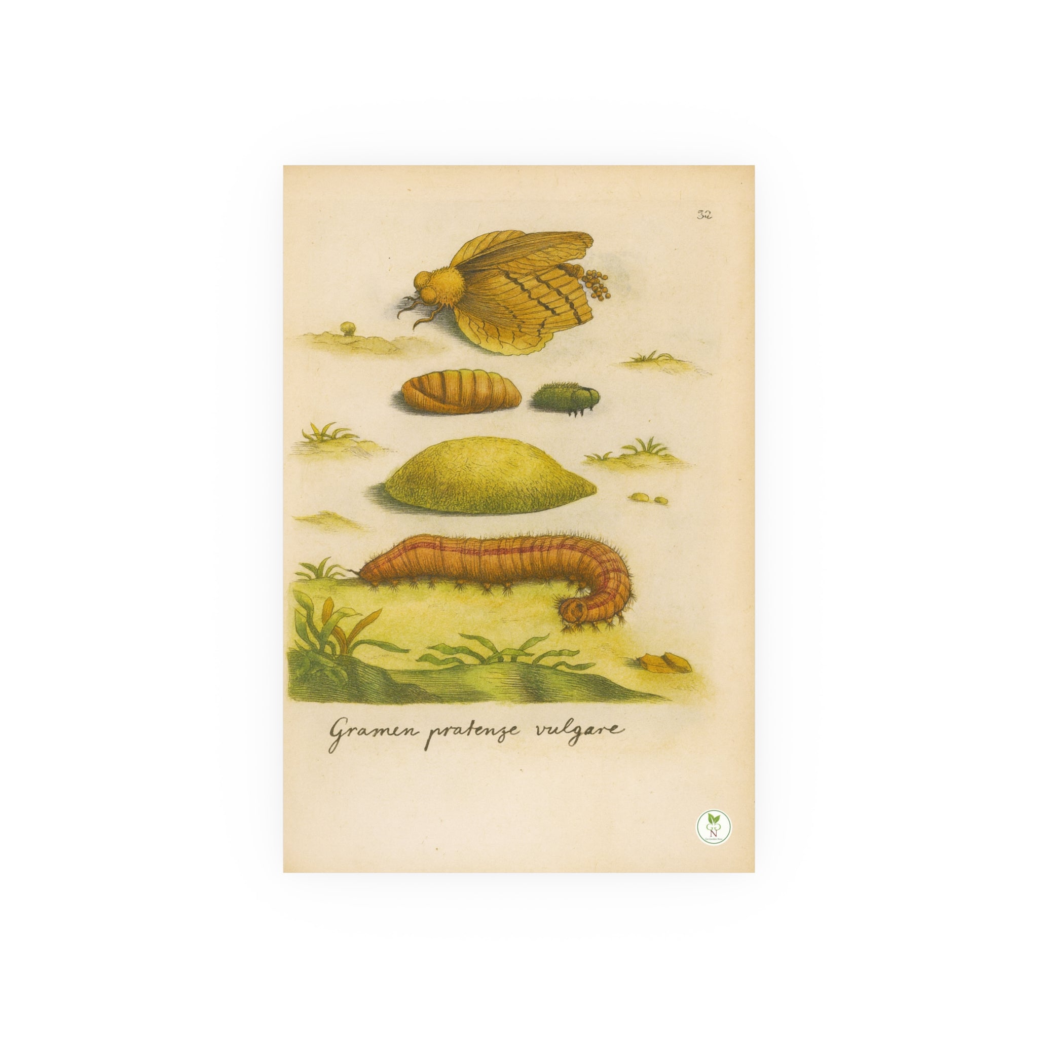 Gramen pratense vulgare, Colorized Meadow Grass with Moth Life Cycle