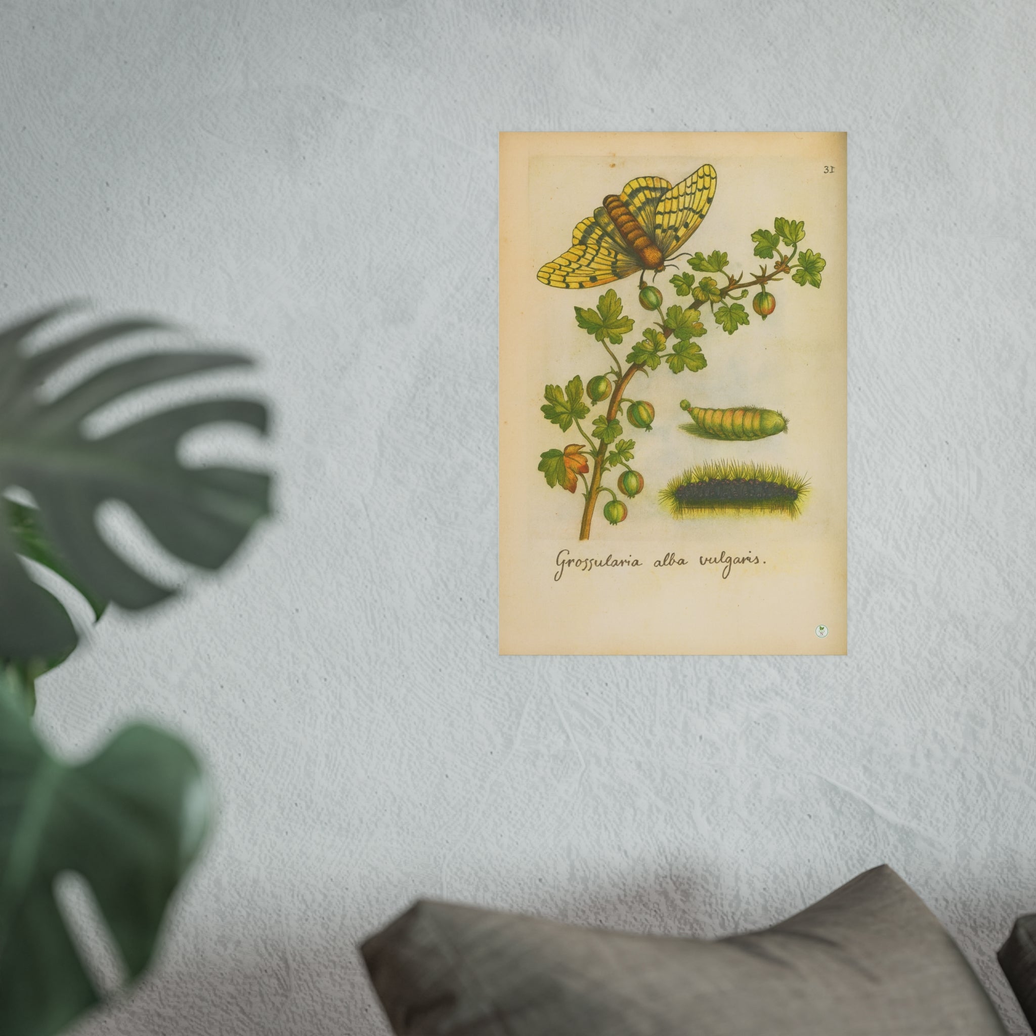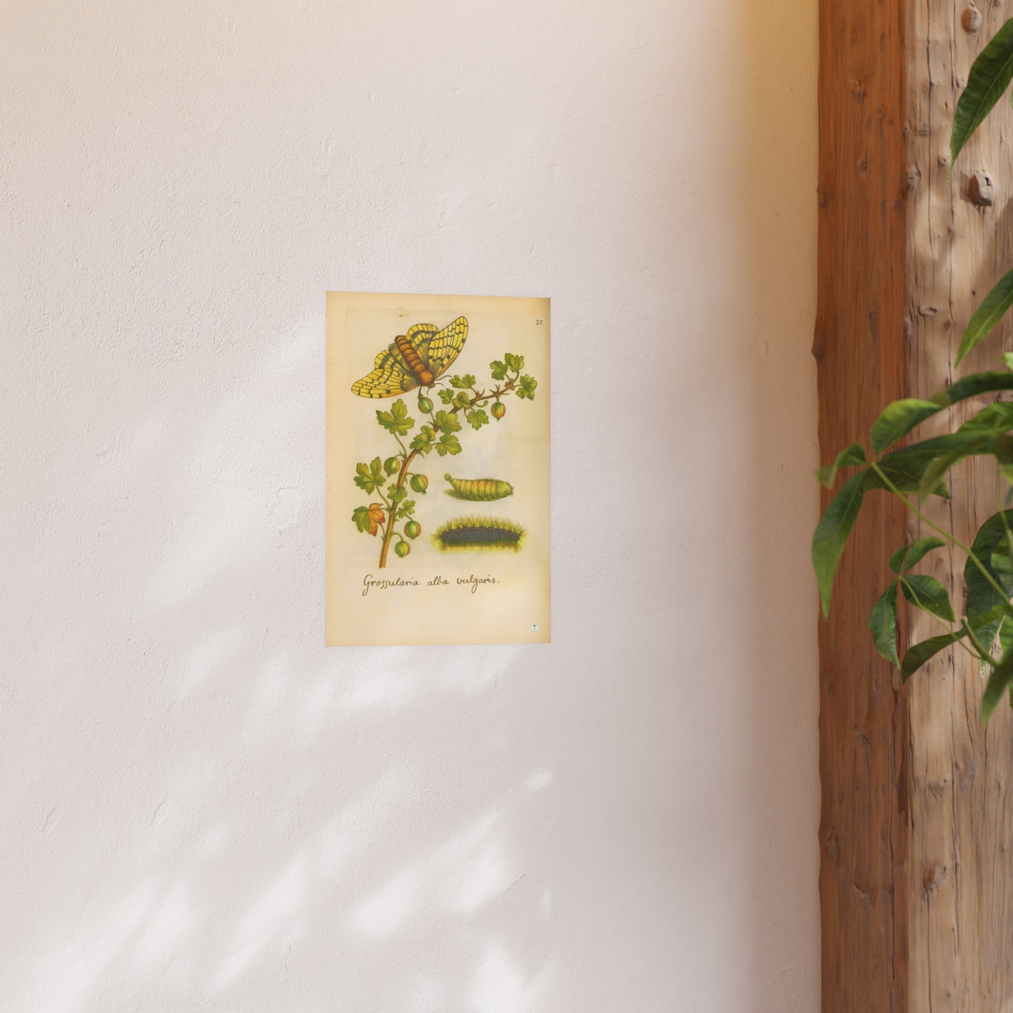 This reproduction has been colorized to restore the authentic tones of both gooseberry and butterfly while preserving the antique character of the original plate. Available exclusively through GoGardenNow, it is part of a carefully curated series that celebrates early natural history and botanical illustration.