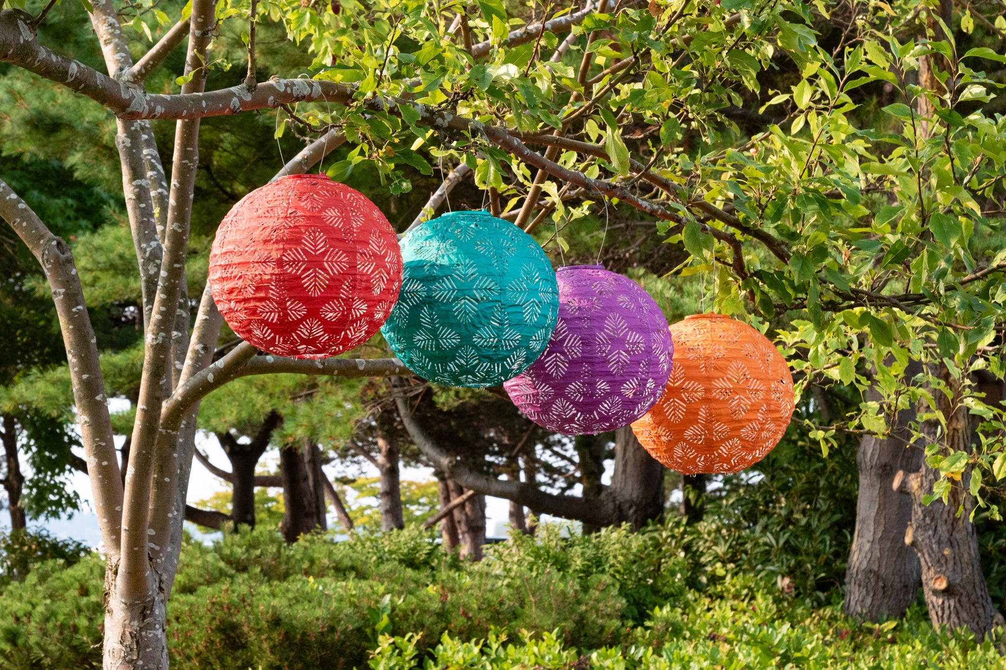 Perfect for creating a warm, welcoming atmosphere, these colorful solar-powered lanterns can be styled in multiple ways: