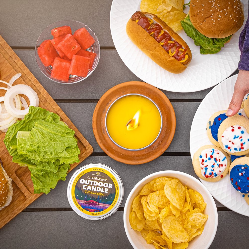 Pests don't get an invite to your backyard party this year! Brighten your backyard and keep buzzes at bay with the all NEW City Bonfires Outdoor Candle in Citronella! Our Citronella Outdoor Candle burns for up to 20 hrs. Citronella is one of our favorite ways to deter pests, it's also all-natural and eco-friendly. The easily portable outdoor candle is made in Rockville, Maryland USA with plant-based products.