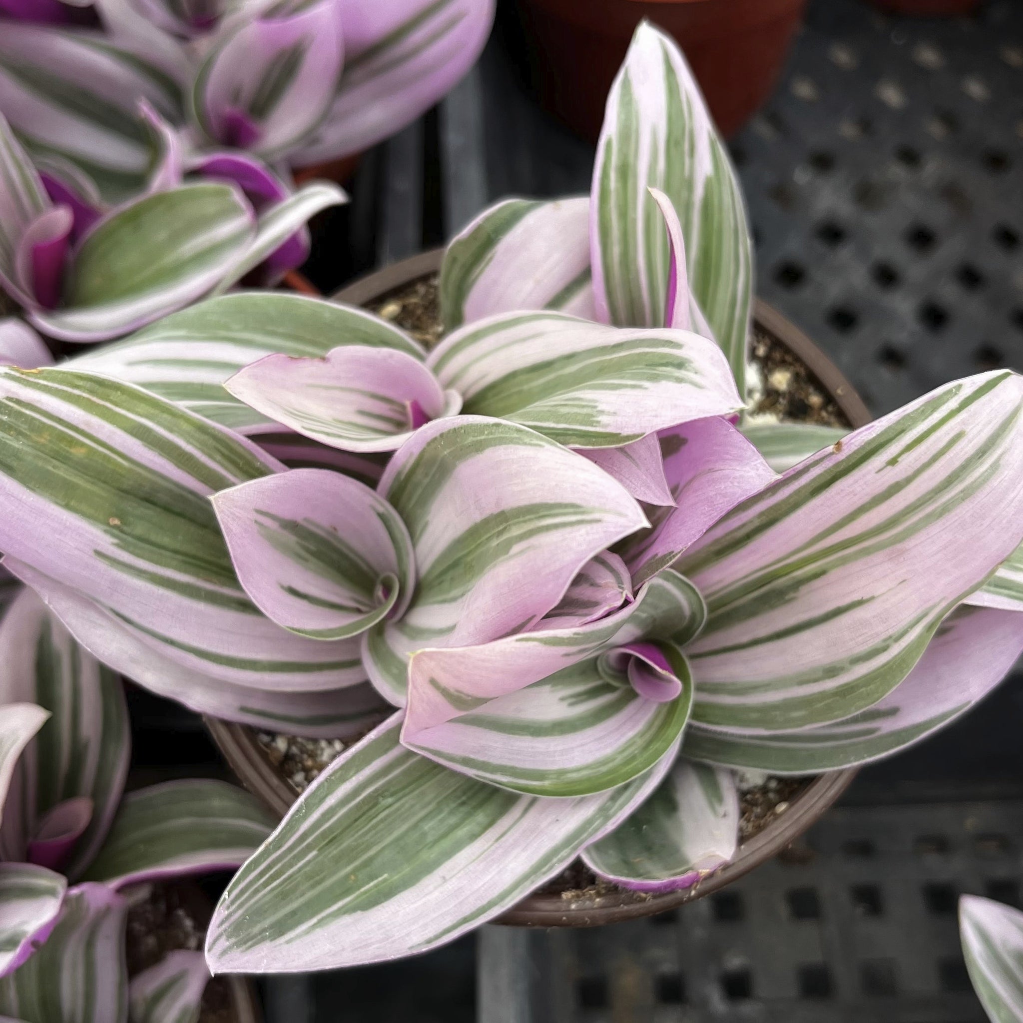 Native to Mexico and parts of Central America, this resilient plant thrives in bright, indirect light and well-draining soil, making it an ideal choice for both indoor and outdoor settings. Whether displayed on a sunny windowsill, incorporated into a lush hanging garden, or featured as a centerpiece in a botanical arrangement, the Tradescantia Zebrina adds a touch of wild beauty to any environment.